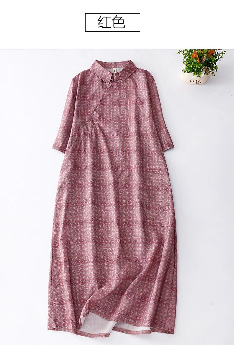 クリアランス漏れ ~ カウンターからの最後の在庫、女性用中国風改良ラミーチャイナドレス、ゆったりとした斜めの前立てのコットンとリネンの半袖ドレス sine88533197206