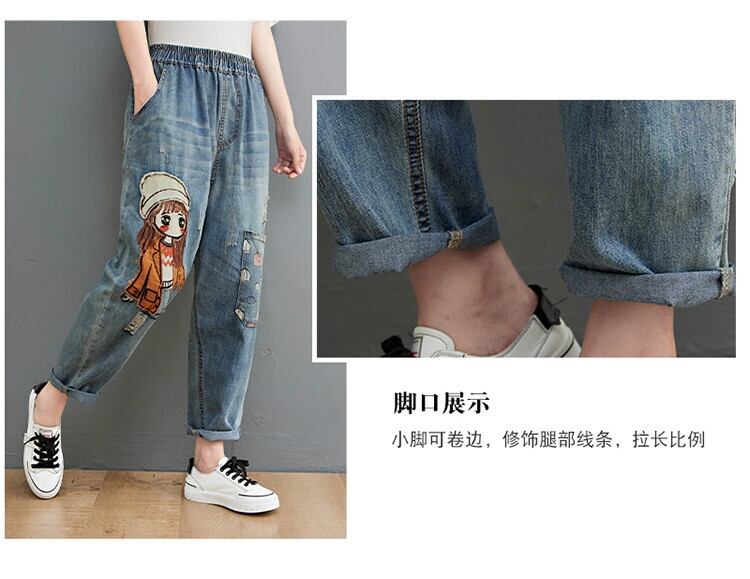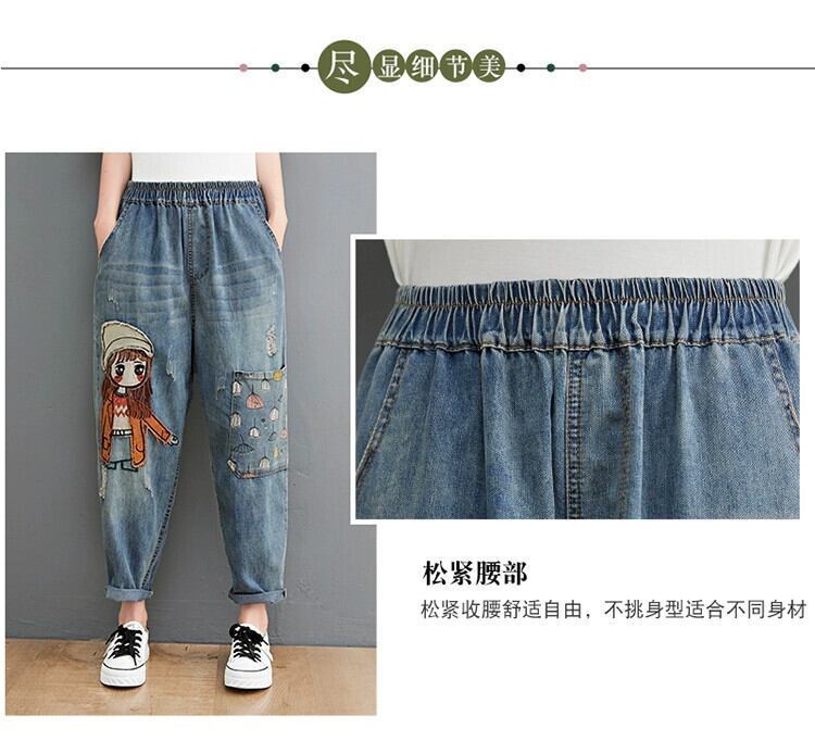ファットシスターデニムハーレムパンツ女性初秋の新しい緩い大きいサイズ脂肪ミリメートル年齢を減らす漫画刺繍カジュアルお父さんパンツ レッド 大きめサイズ オータム 秋物 sine67375395667