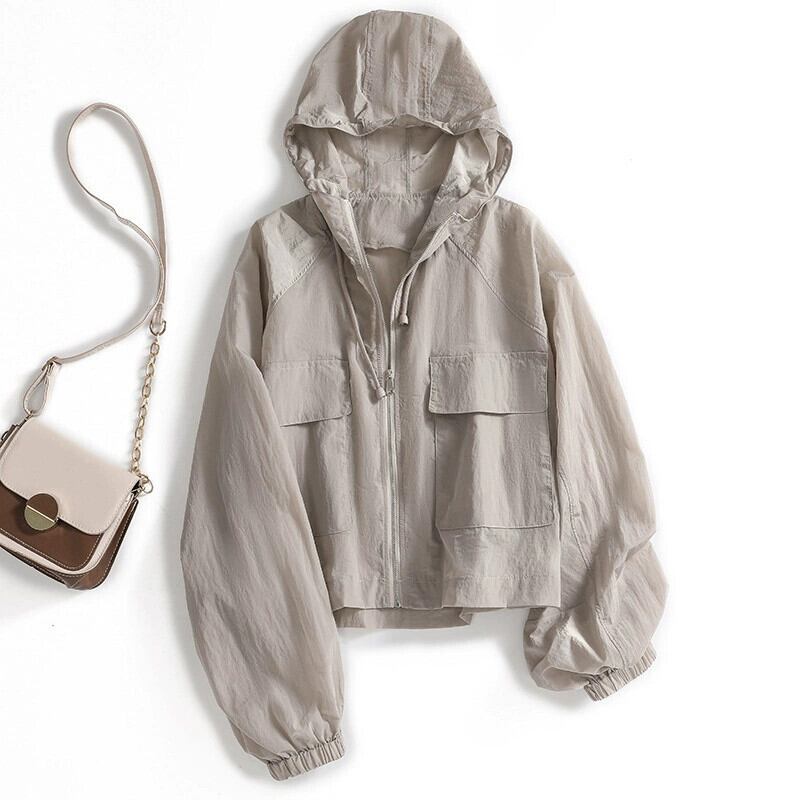 Eign Trade Export Big カットオフシングルリネン日焼け止めシャツジャケットレディースカジュアルライトラミーフード付き長袖トップ ロング sine15026319871
