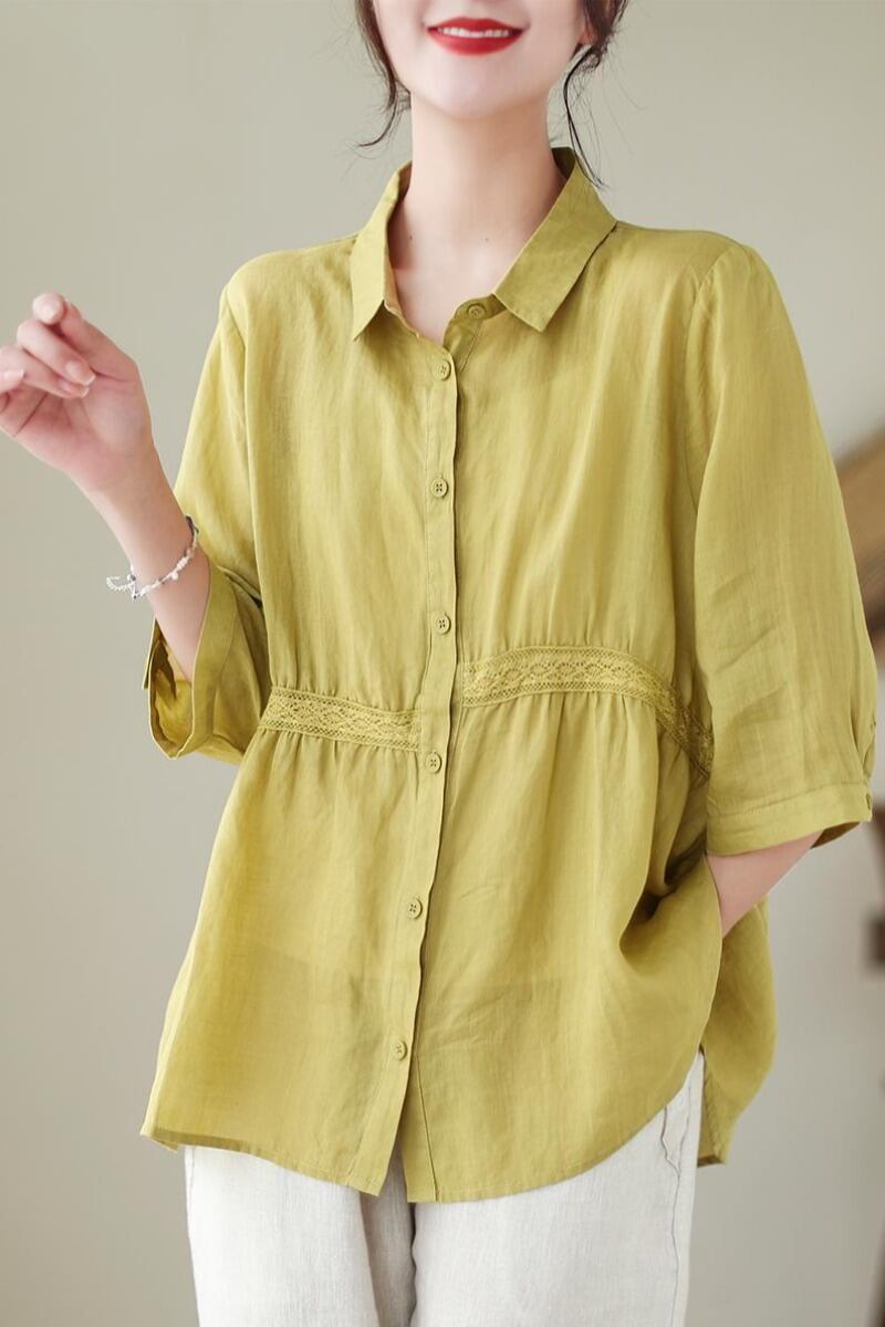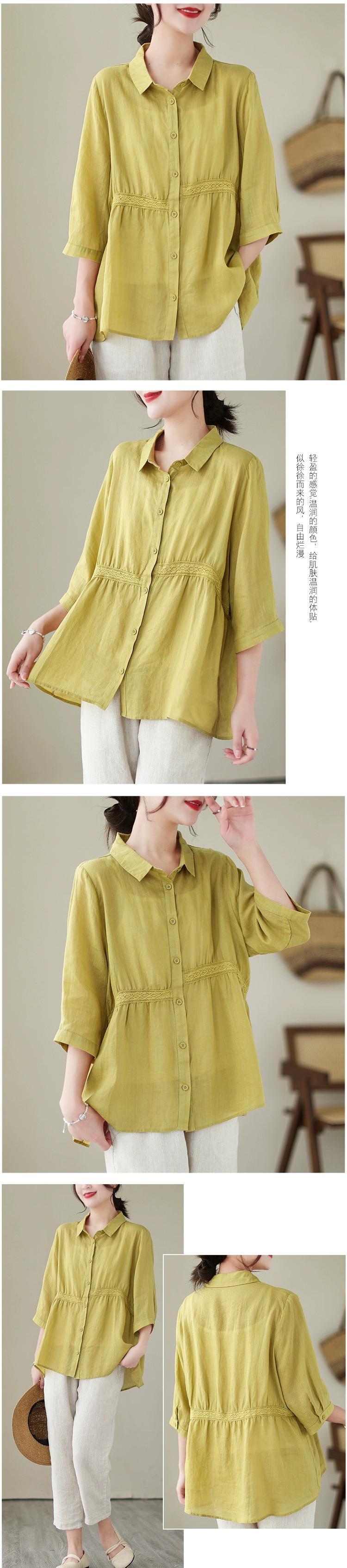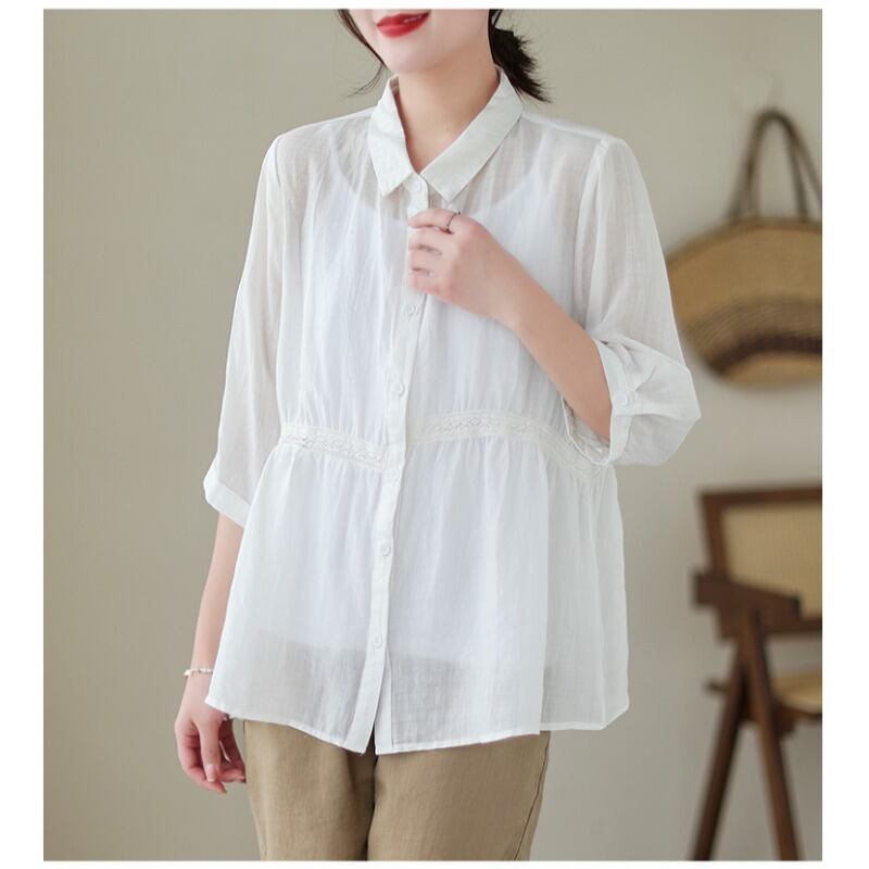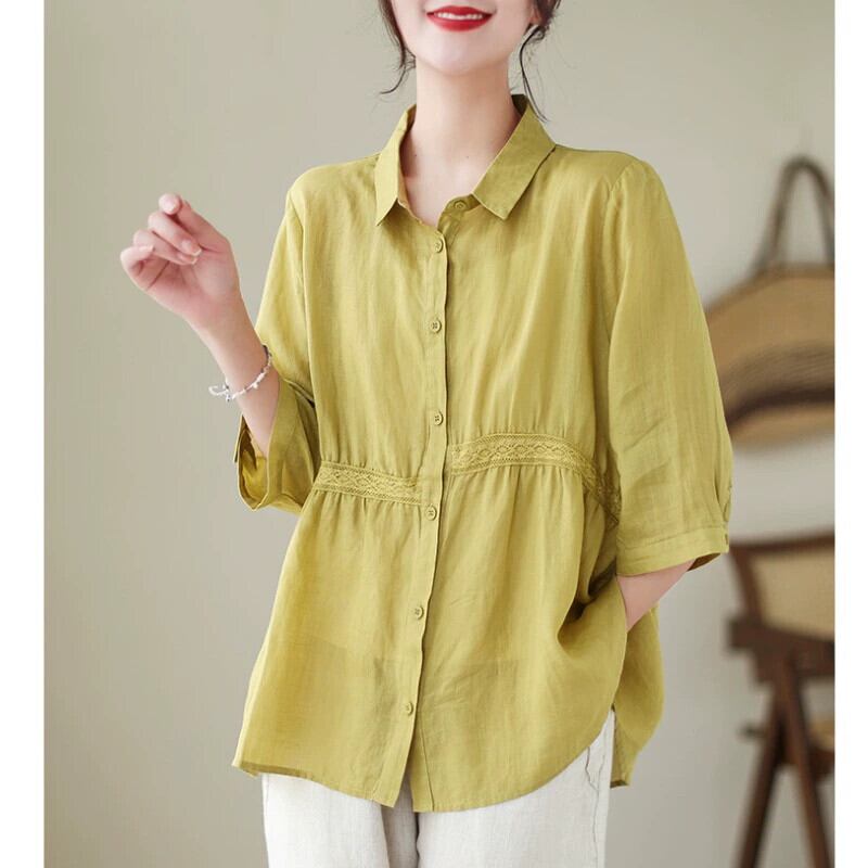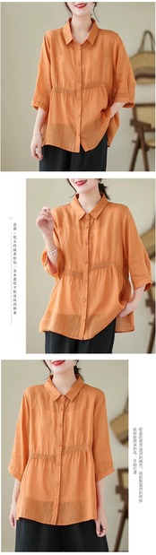 漏れを拾ってください!有名製品のカウンター削除これらの綿とリネンの七分袖シャツ女性の夏のルーズカジュアルリネントップス コットン サマー 夏物 sine91606620419
