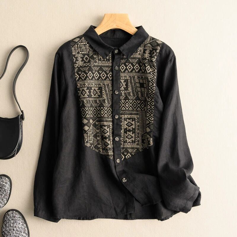 クリアランス漏れ〜カウンター大手ブランドが最後の在庫を撤回、ラベルをカット、レディースレトロパッチリネントップ、コットンとリネンの長袖シャツ ロング sine75793770608
