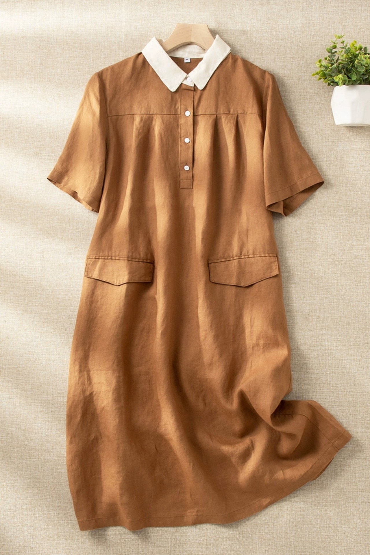 ファーストラインブランド eign trade 最終在庫 レディース 綿麻ラペルミモレ丈スカート 大きいサイズ コントラストカラーラミー半袖ワンピース コットン 大きめサイズ sine51183375758
