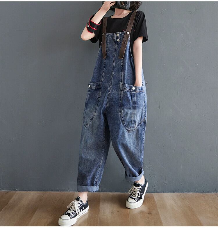 バージョンのプラスサイズの女性の夏 2021 新しいルーズファットシスターダメージ加工ジャンプスーツハーレムパンツカジュアルデニムオーバーオール 大きめサイズ サマー 夏物 sine55780114540