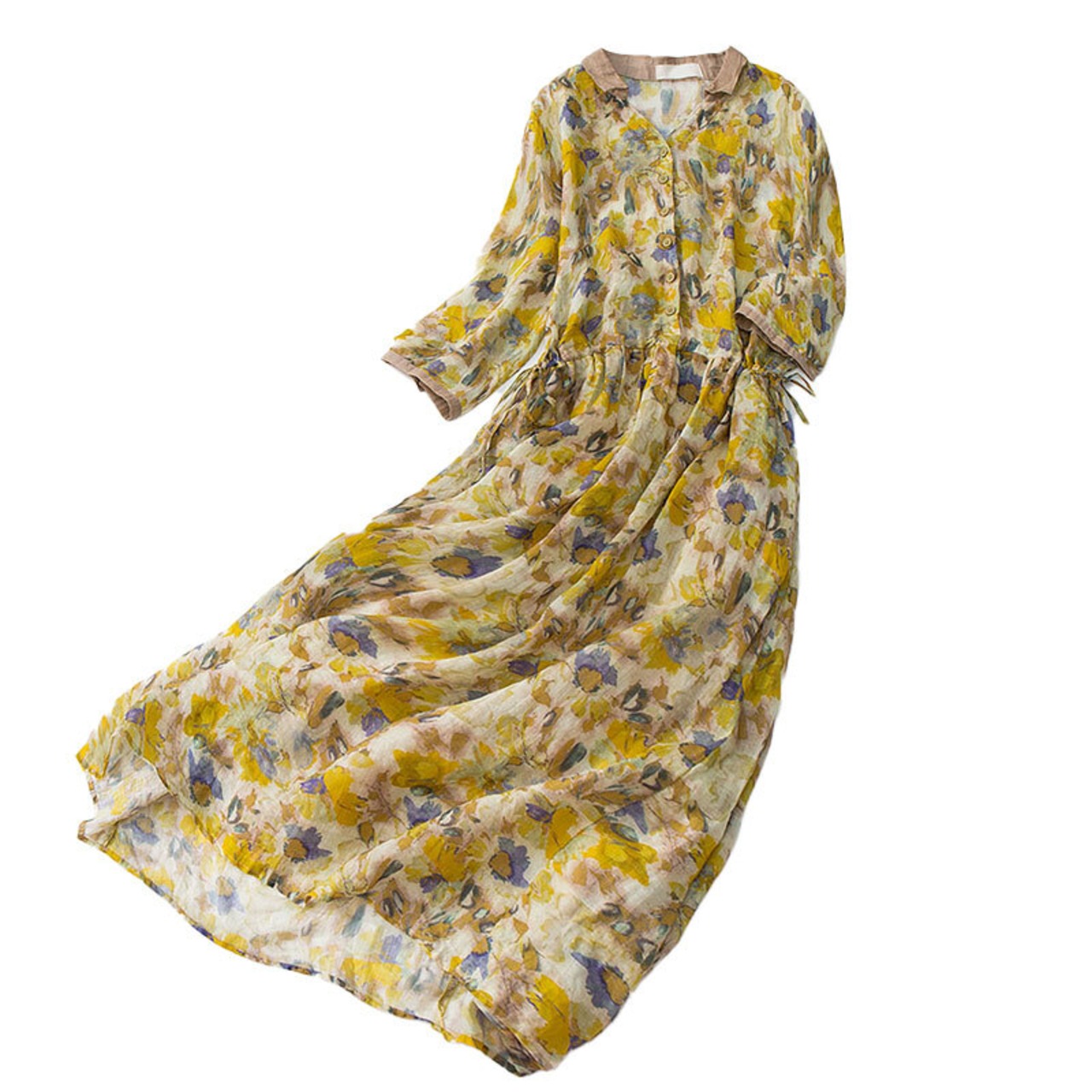 クリアランス漏れ〜カウンターは有名カットレーベルのレディース花柄ラミーシャツロングスカートカジュアルVネックコットンリネンドレスを撤回しました sine26789087448