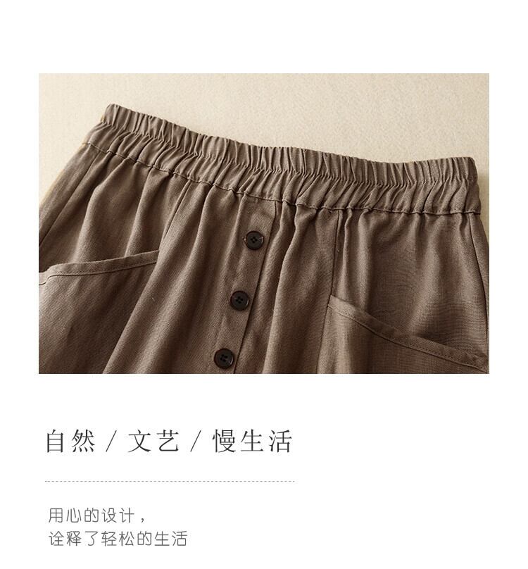 eign trade ese オリジナルの有名な既製のコットンとリネンのスリットスカートの女性、弾性ウエストボタン付きリネン A ラインミドル丈スカート エラスティック 伸縮 Aライン sine29434558718