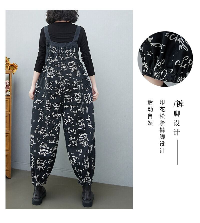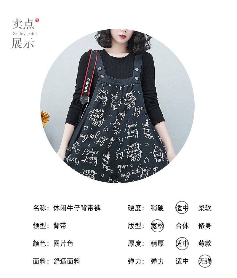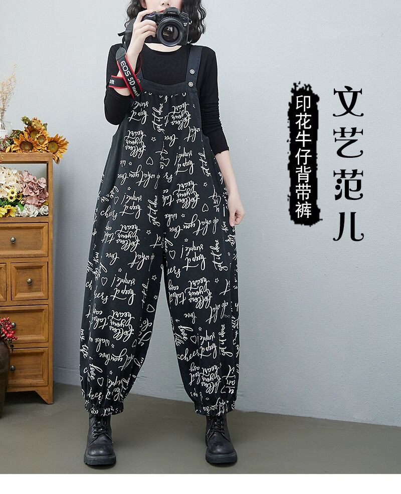 デニムオーバーオール女性の 2022 春ルーズ大きいサイズ西洋スタイルプリントウエスト腹カバー痩身ジャンプスーツハーレムパンツ 大きめサイズ スプリング 春物 sine34413684017
