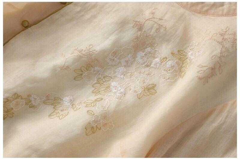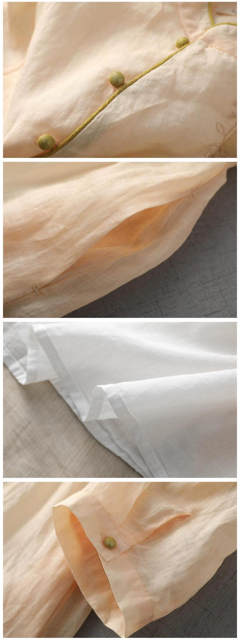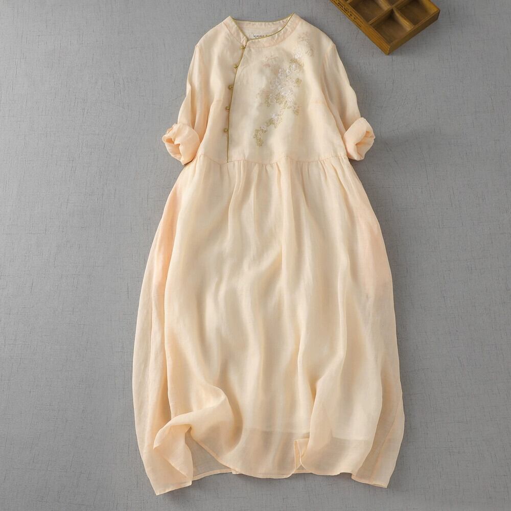 Eign Trade Export Tail Goods 中国風改良ラミーチャイナロングスカート女性のゆったりとした軽い刺繍リネンドレス レッド sine25882710388