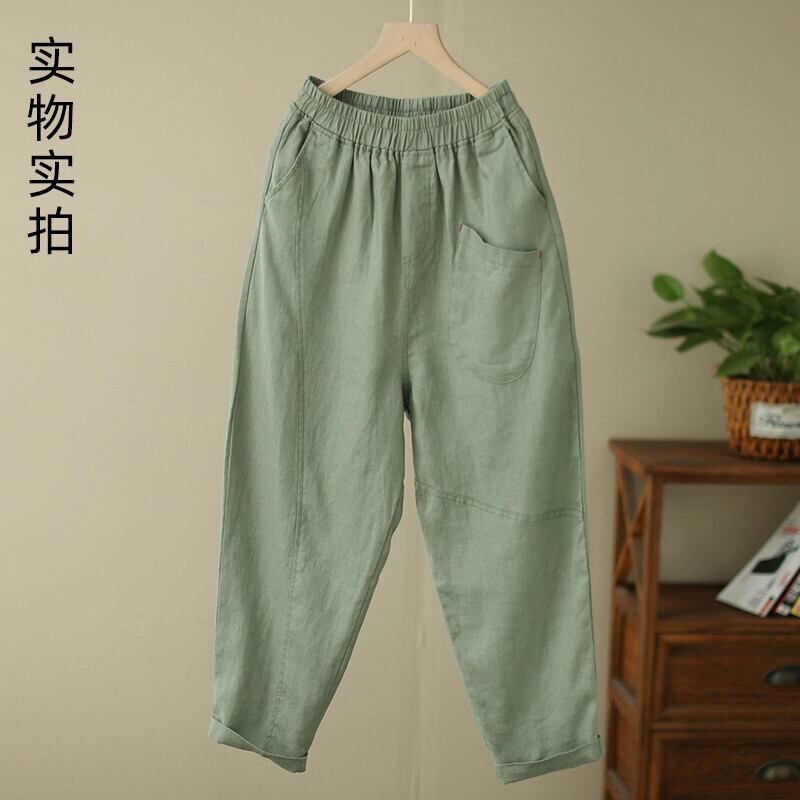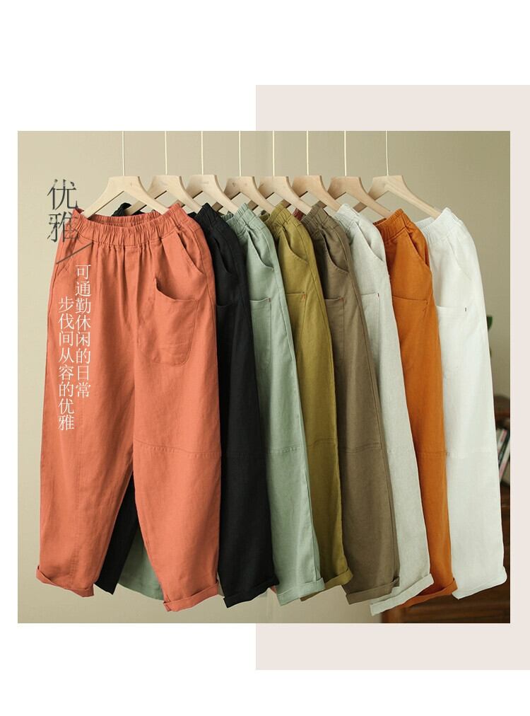 eign trade ese tail グッズ カットマーク クリアランス レディース ルーズ レトロ リネン 薄手 ハーレム パンツ カジュアル コットン リネン 9点キャロットパンツ sine10923662537