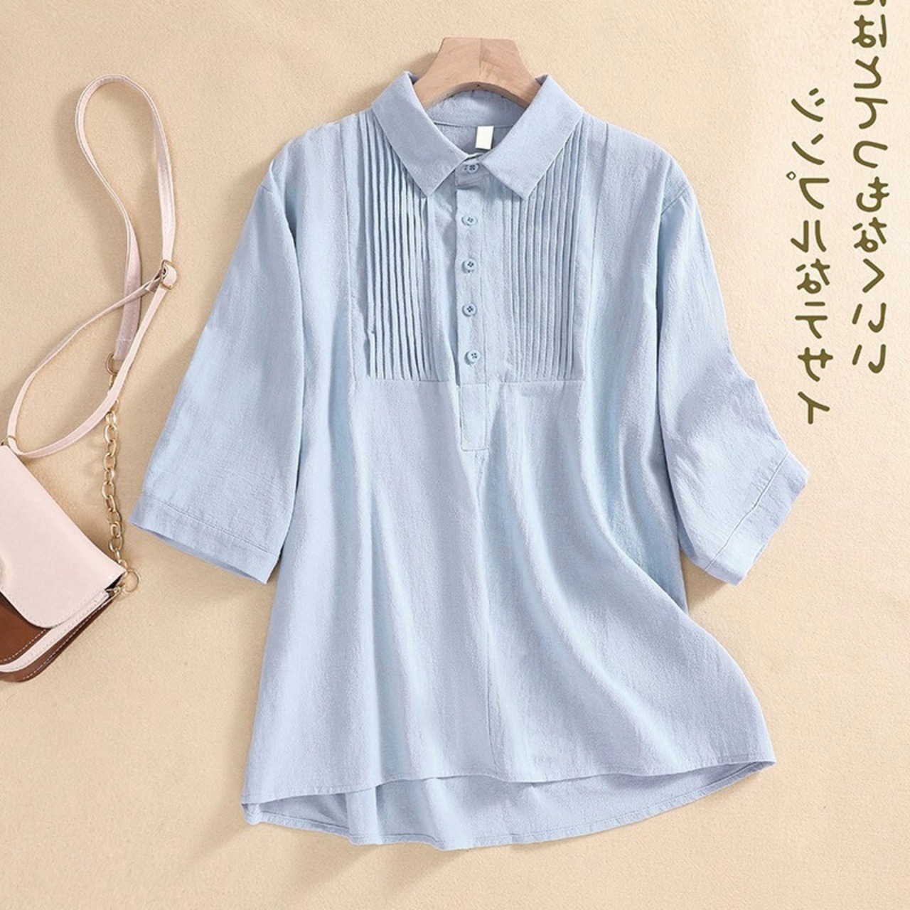 クリアランス漏れ ~ カウンターは eign trade カットラベルを撤回しました レディース アコーディオン プリーツ コットン ヤーン トップ ラペル コットンとリネン半袖シャツ sine90211503033