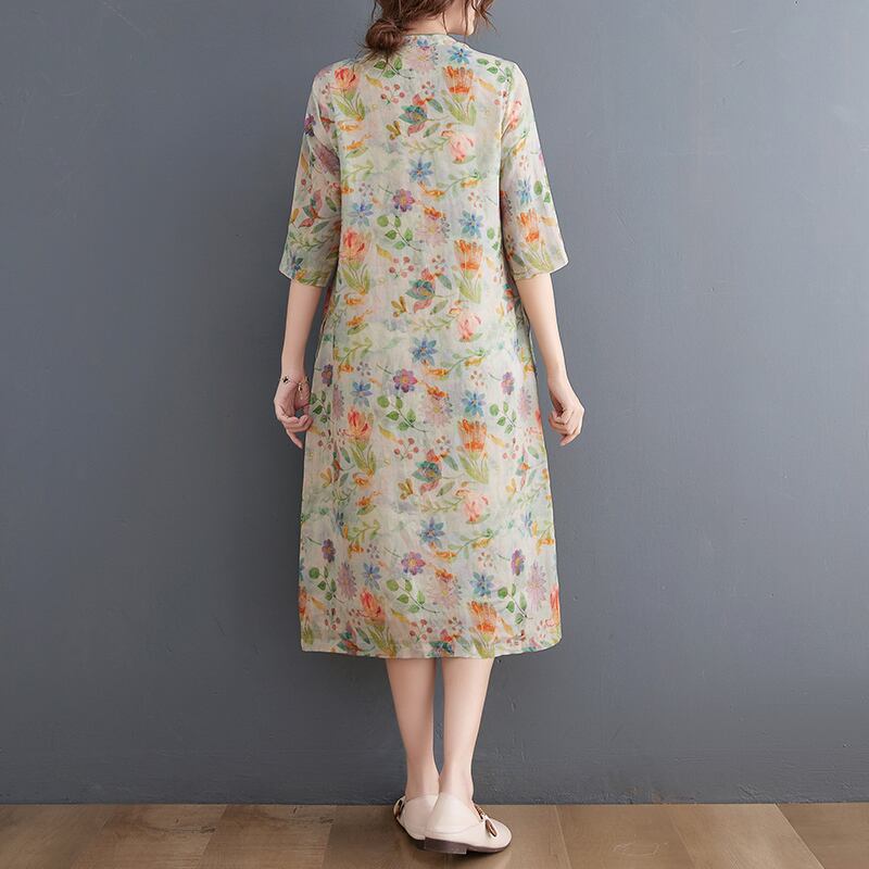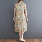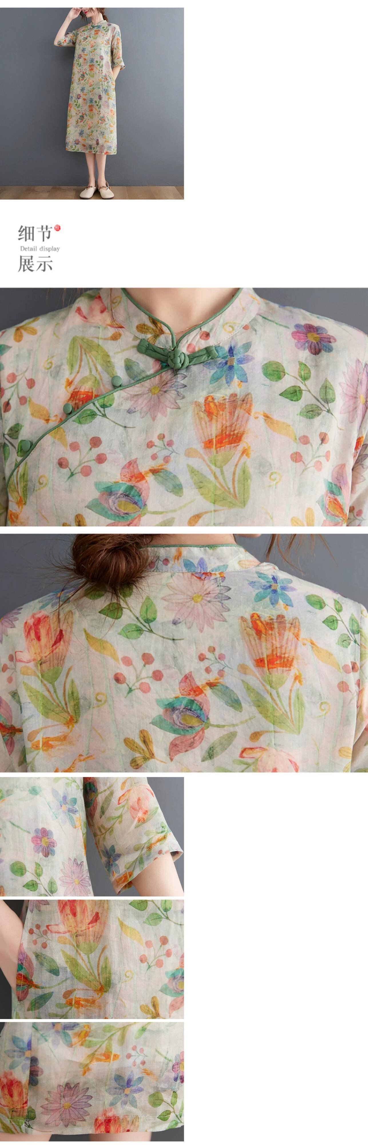 Eign Trade 輸出ブランドテールグッズ女性の中国風プリントラミーチャイナスカート斜め前立てプレートボタンスタンドカラーリネンドレス sine34784864294