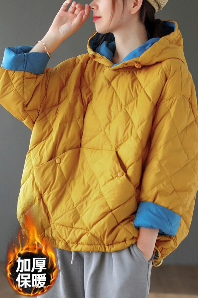 フード付きスウェットシャツジャケットの女性の秋と冬のゆったりとした大きいサイズスタイルの菱形キルティング肥厚プルオーバーライトダウンコート 大きめサイズ オータム 秋物 ウィンター 冬物 sine95934428902