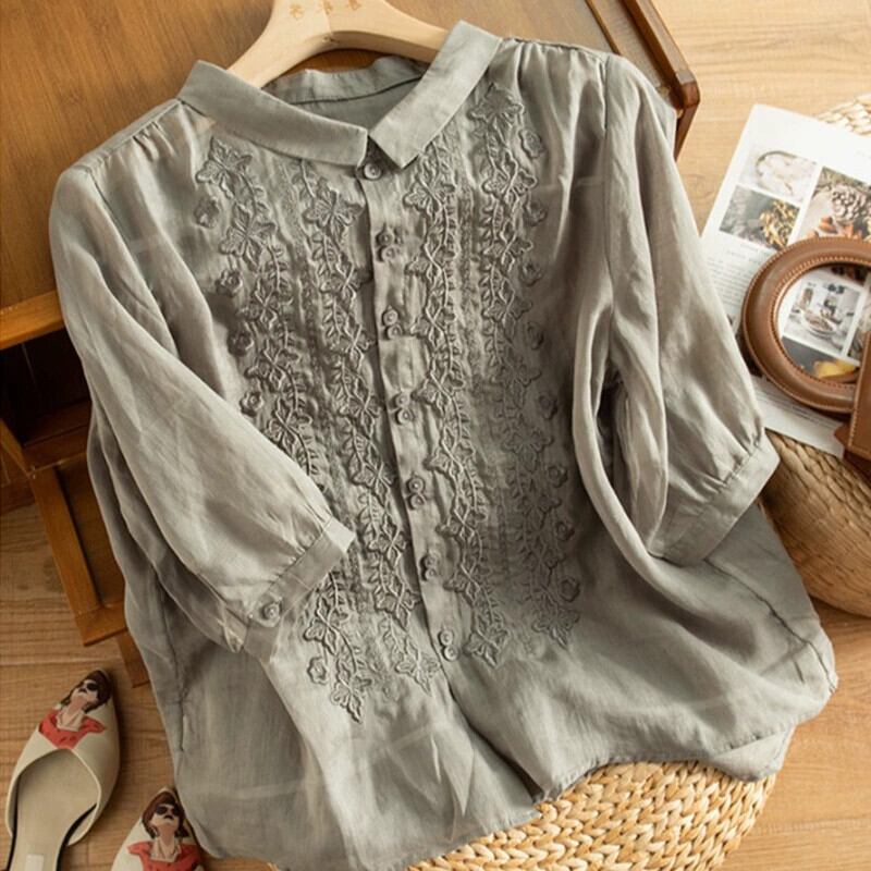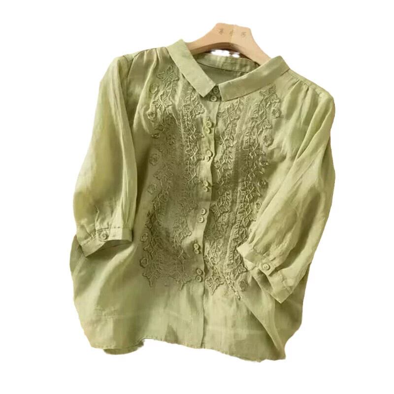 eign trade ese オリジナルハイエンドブランド刺繍ラミー七分袖シャツ女性ルーズで軽い綿とリネンのカーディガントップ レッド コットン sine56436627789