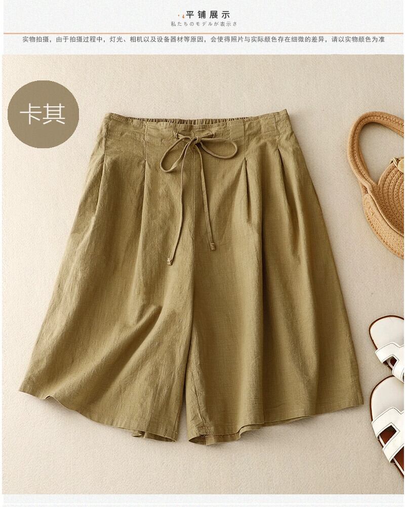 eign trade ese オリジナルハイエンドブランドリネンカジュアルパンツレディースハイウエストドローストリングコットンとリネンの a ラインワイドレッグショーツ ブルマー Aライン sine97681500700