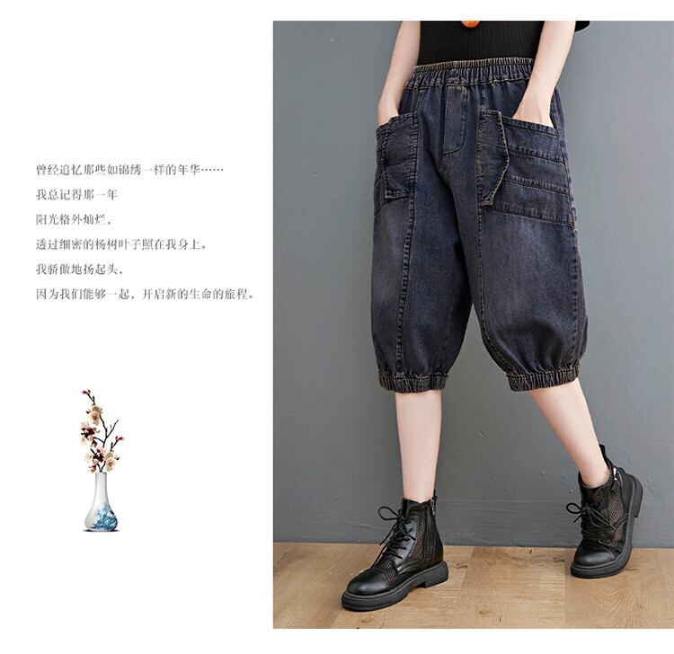 ファットシスターデニムハーレムパンツ女性 2021 夏ルーズ大きいサイズハイウエストミディアムパンツファットミリメートルカジュアル七分丈お父さんパンツ ハイウェスト 大きめサイズ サマー 夏物 sine64953542115
