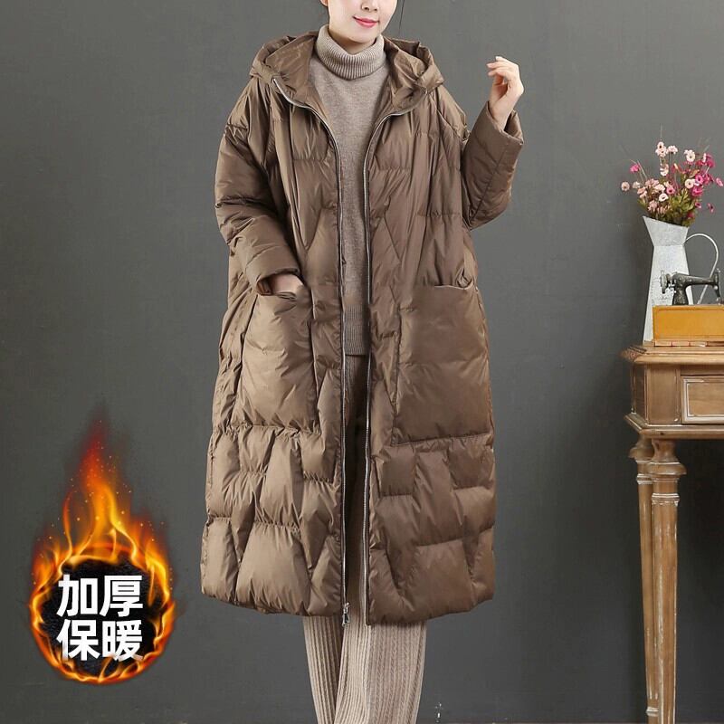 薄手ダウンジャケットレディース冬ゆったり大きいサイズスタイリッシュなジッパーミッドレングス厚く暖かいフード付きホワイトダックダウンジャケット 大きめサイズ ウィンター 冬物 sine35078317895