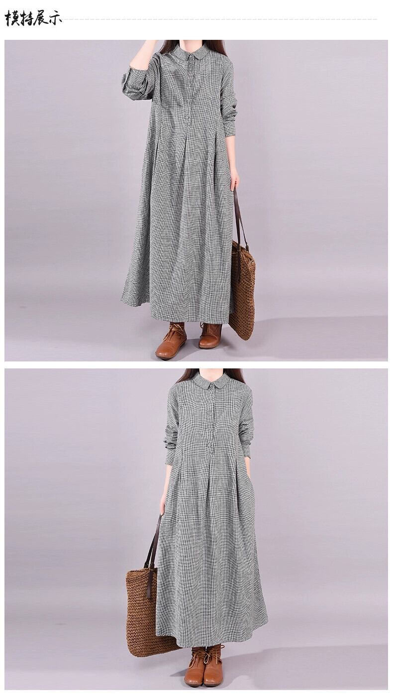 ディスカウントショッピングモール撤退ラストオーダークリアランスカットラベルレディース綿麻長袖ドレスチェック柄シャツリネンロングスカート コットン sine7388412853