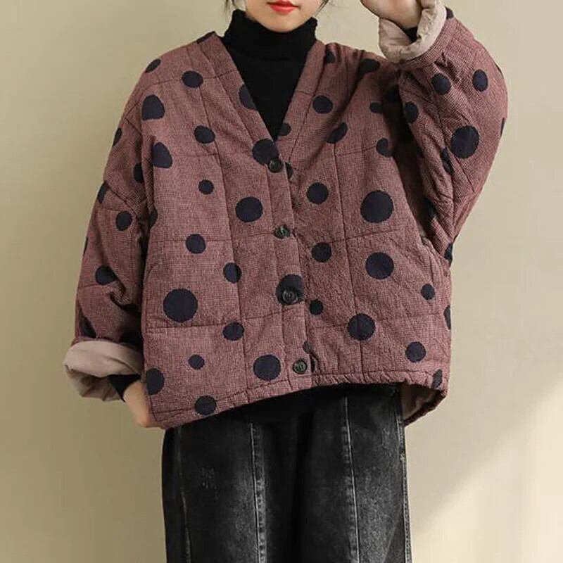 レトロ文学プラスサイズの婦人服ファットキルティング肥厚暖かい綿ジャケット年齢を軽減水玉模様長袖綿服ジャケット ロング コットン 大きめサイズ sine41400697624