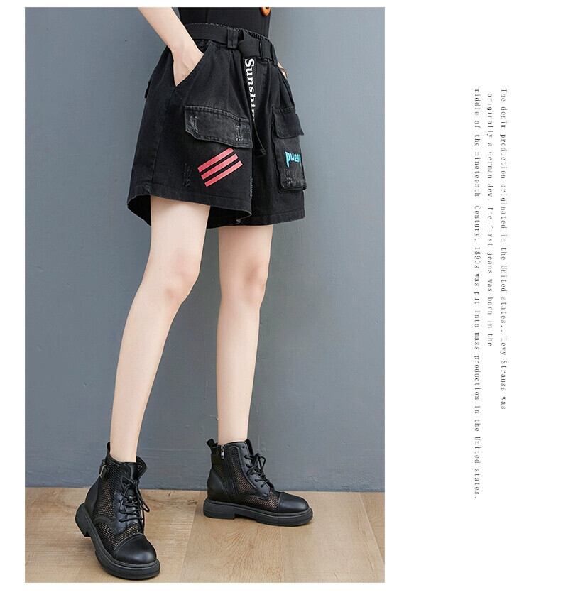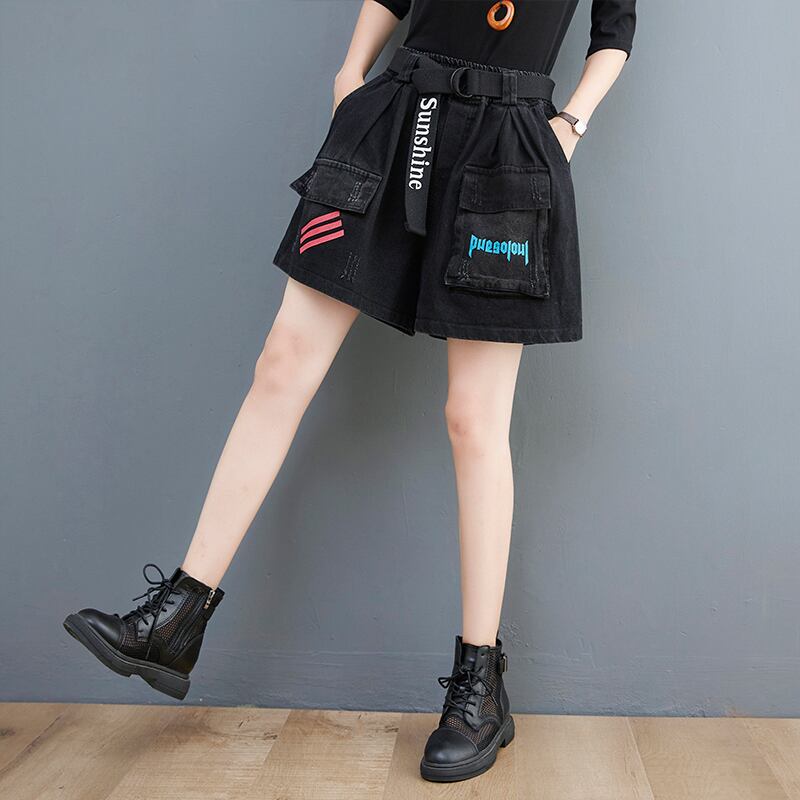 バージョンのデニムショートパンツレディース 2021 夏ゆったり大きいサイズファット mm 個性レターパッチポケットカジュアル A ラインワイドレッグパンツ 大きめサイズ サマー 夏物 ショーツ ブルマー Aライン sine29234534811