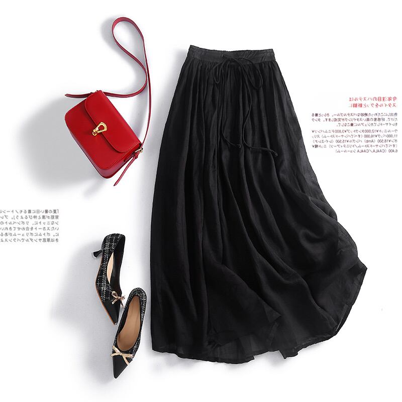 Eign Trade Export Tail Goods Big Cut Labelリネンレディーススカートハイウエスト大きな裾二重層ラミーコットンリネンAラインスカート ハイウェスト sine82411951936