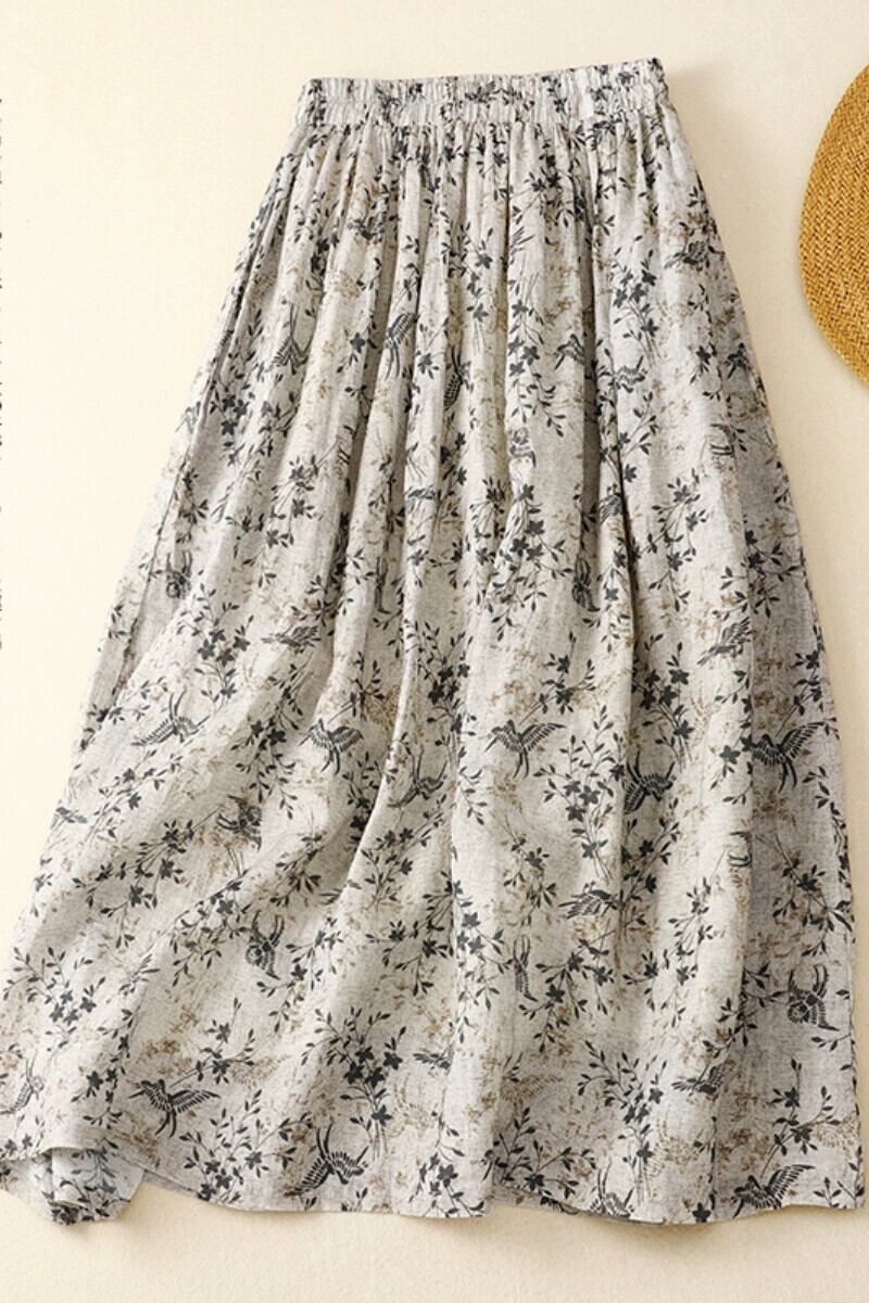 eign trade 激安ブランドテールグッズレディース ese ラミー花柄スカートウエストゴムカジュアル綿麻 A ラインミモレ丈スカート コットン エラスティック 伸縮 Aライン sine17737510694