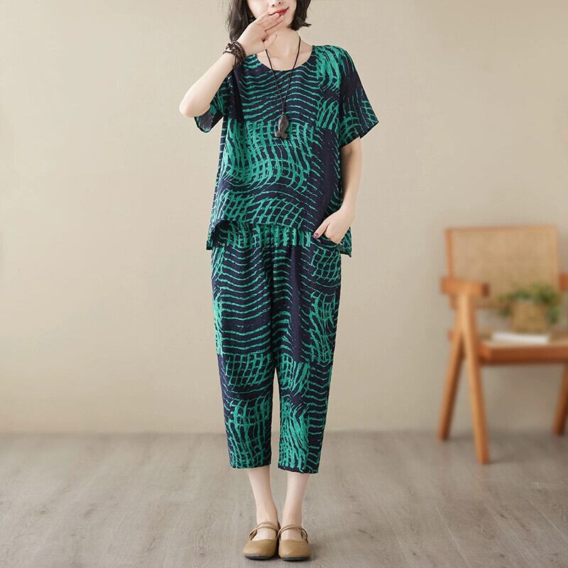 クリアランスカウンター、大手ブランドテールグッズ、綿麻2点セット、レディース半袖トップス、Tシャツ、七分丈ハーレムパンツスーツ、夏 コットン サマー 夏物 sine59951214228