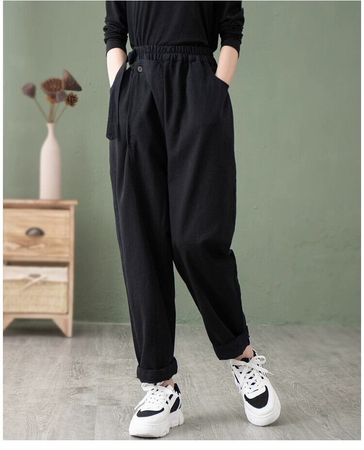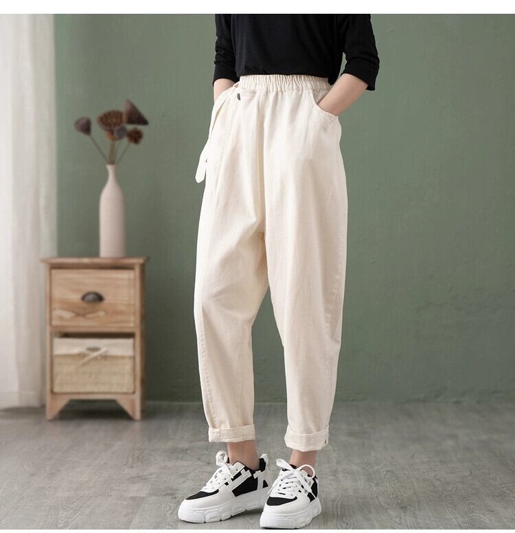 クリアランス漏れ ~ ese と eign 貿易輸出シングル女性のカットラベルレトロ弾性ウエストカジュアル小足お父さんハーレムパンツ エラスティック 伸縮 sine70457165162