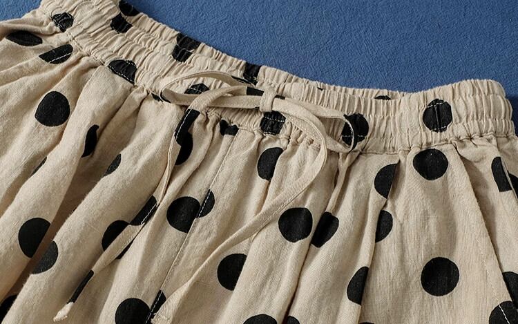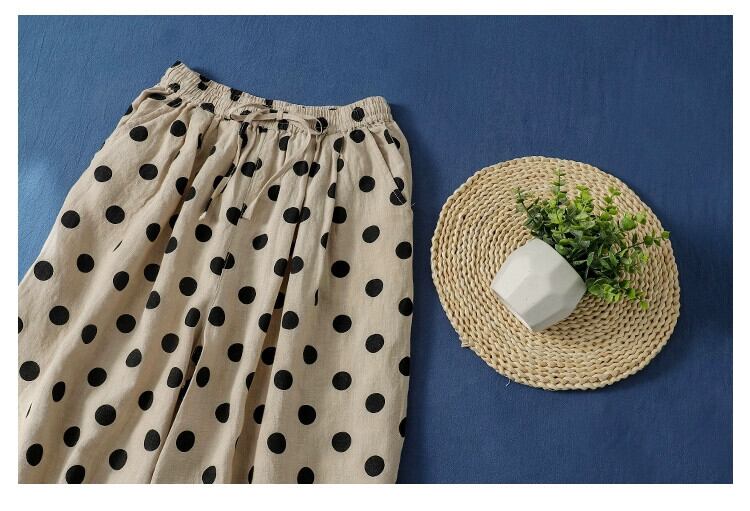 リークを拾います〜カウンターから削除されました、水玉模様の綿とリネンのワイドレッグパンツの女性、芸術的な伸縮性のあるウエスト、痩身、カジュアルなリネンの9点パンツスカート コットン エラスティック sine53155636211