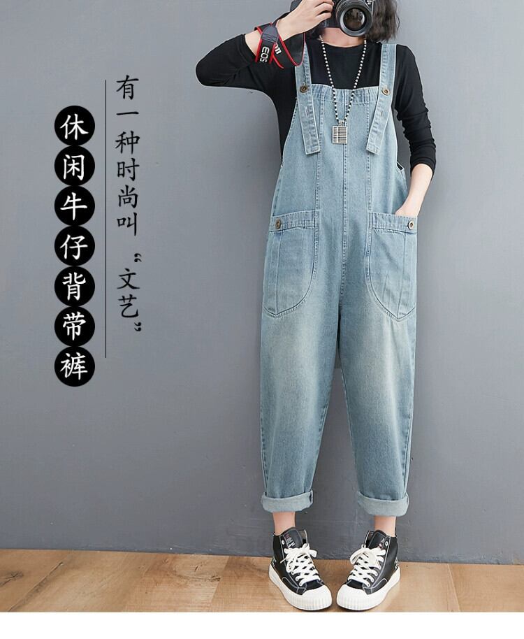デニムサスペンダー女性 2022 春と夏の文学レトロつや消し白ハーレムパンツ緩い大きいサイズスタイルサスペンダージャンプスーツ ホワイト 大きめサイズ スプリング 春物 サマー 夏物 sine54104649165