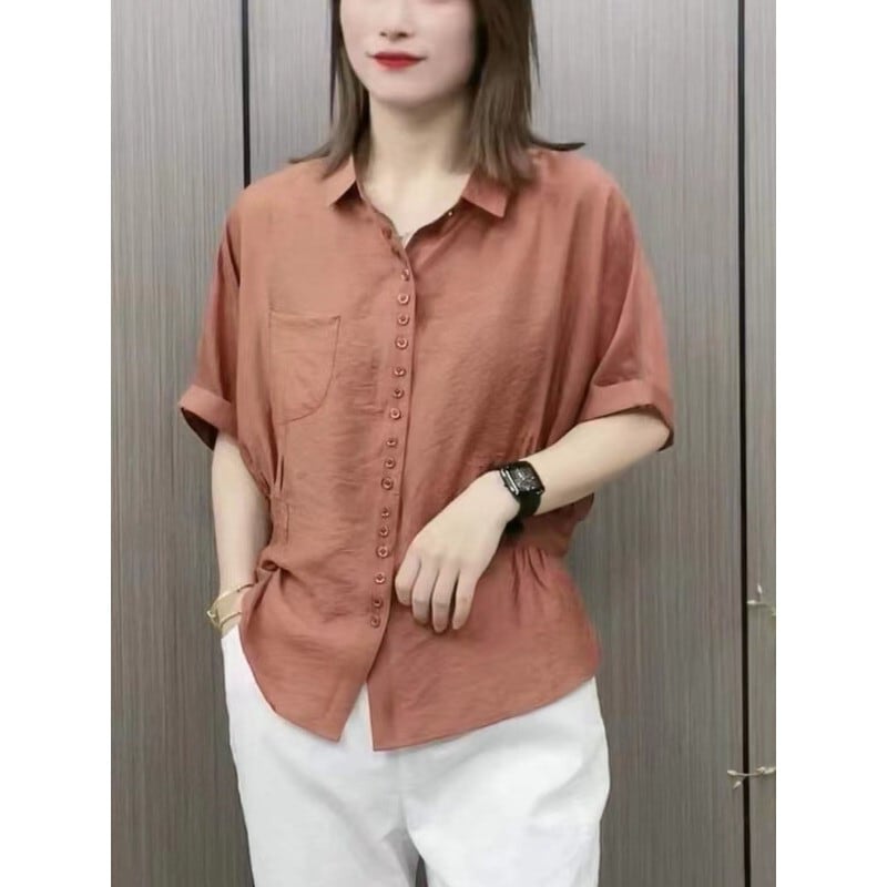 eign trade ese オリジナルハイエンドブランドレトロ綿とリネンバットスリーブシャツレディースルーズカジュアルリネン半袖トップ コットン sine95344764783