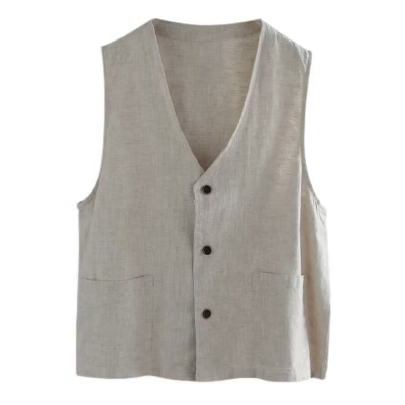 eign trade ese 有名なカウンター商品リネン V ネックシングルブレストベストベスト女性ルーズコットンとリネンノースリーブトップ Vネック sine88376249065