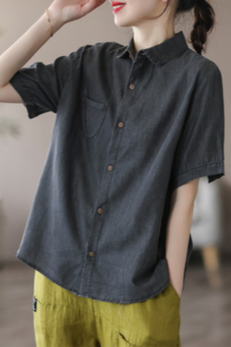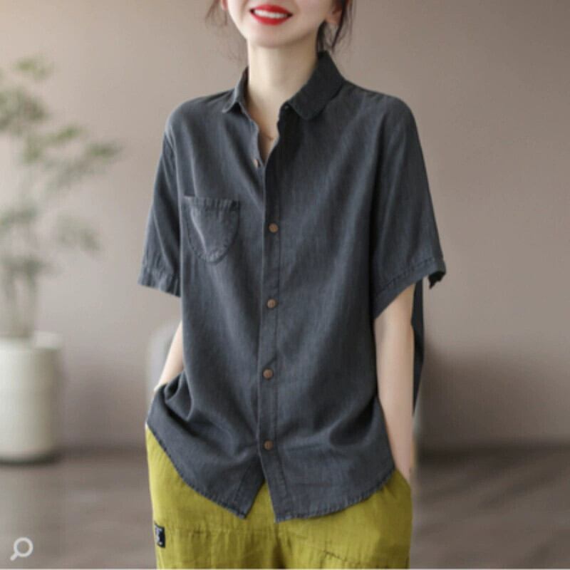 クリアランス漏れ~有名ブランドのカットオフデニム半袖シャツ、ゆったりとした薄手のテンセルトップスをカウンターが撤収しました sine83491759494