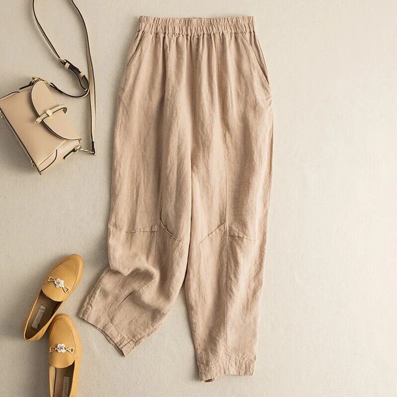 クリアランスリーク〜婦人服、綿麻9点ハーレムパンツ、ウエストゴム、カジュアルリネンキャロットパンツ コットン エラスティック 伸縮 sine27968174386