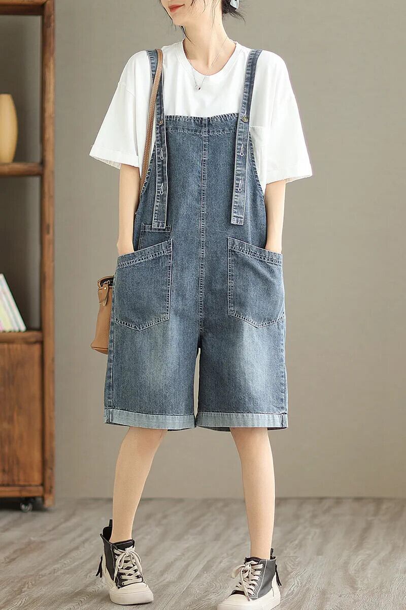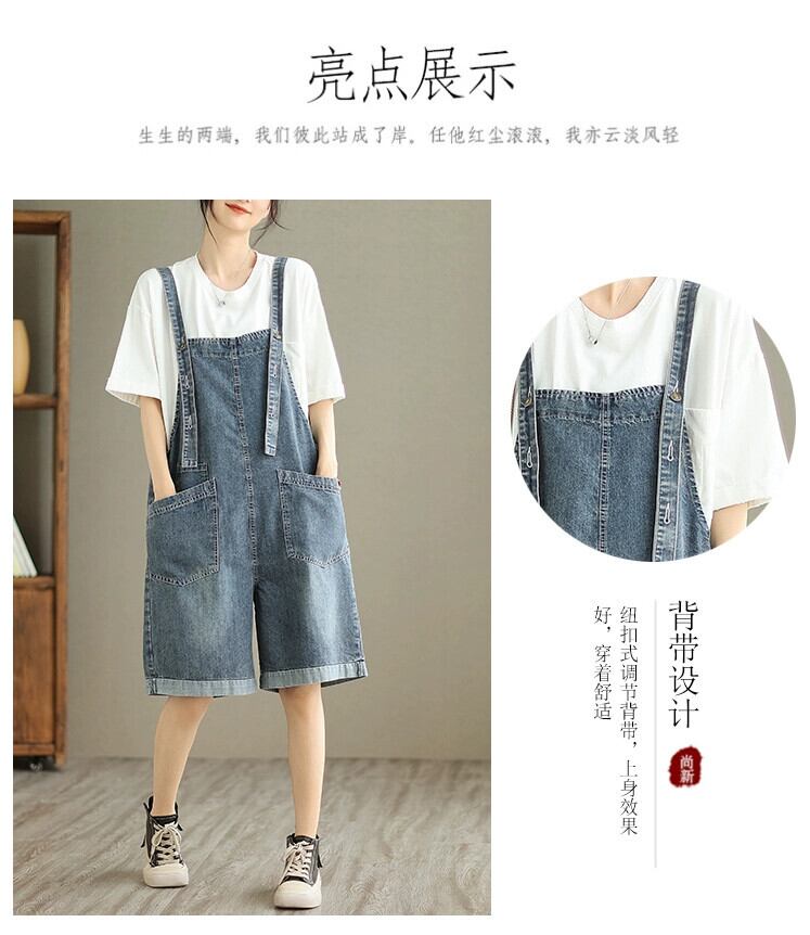 ディスカウント ストア モール削除レトロ ダメージ デニム サスペンダー レディース ルーズ スリミング 5 ポイント ワイドレッグ ジャンプスーツ sine68661791273