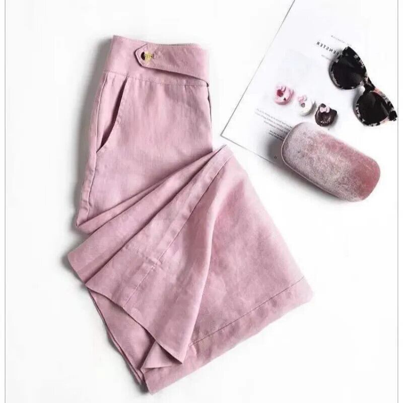 年齢を減らすためのクリアランス〜カウンターエイントレードシングルレディースハイウエストストレートドレープ9ポイントリネンコットンリネンワイドレッグパンツ sine63474359777