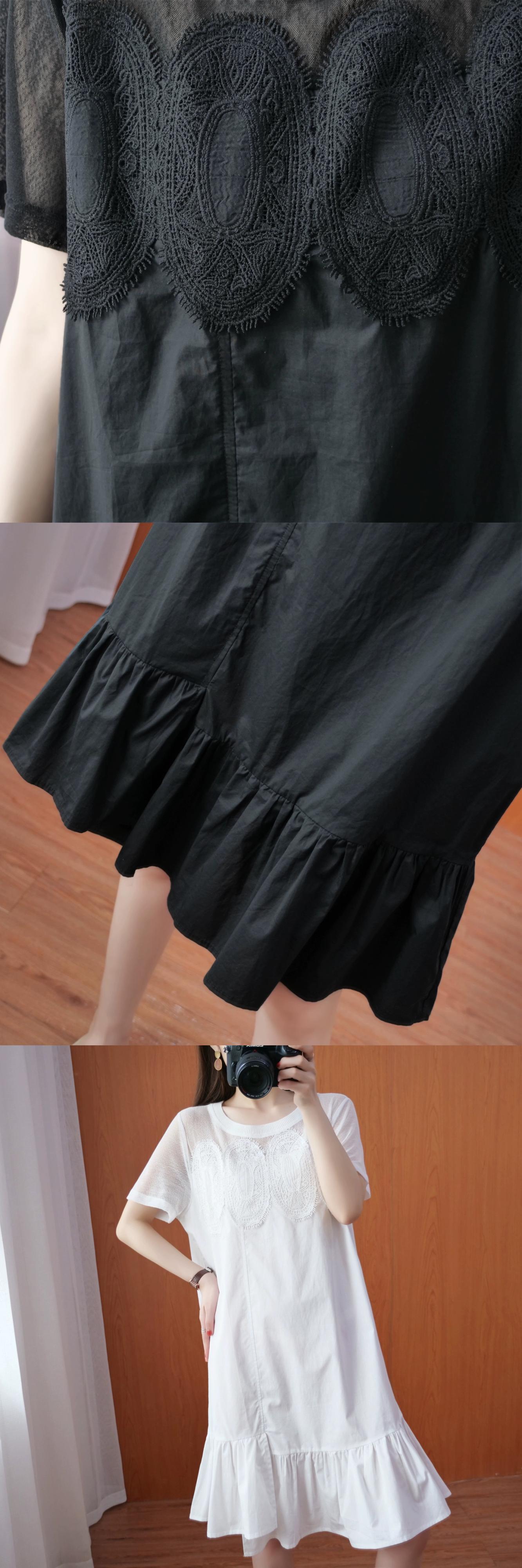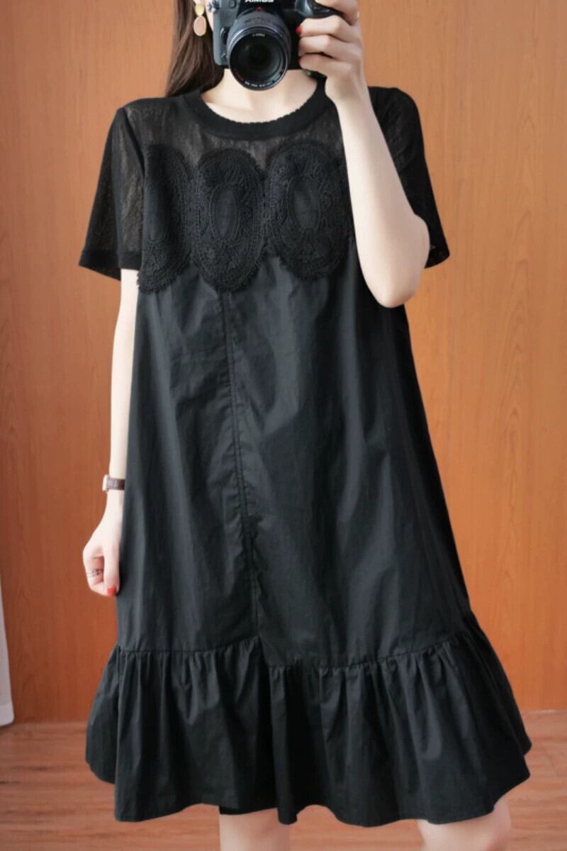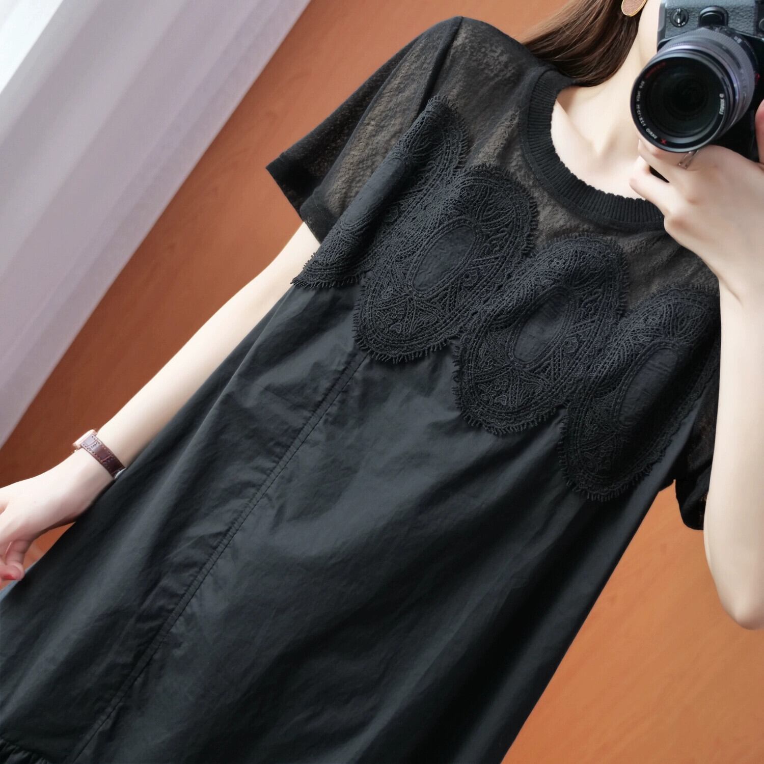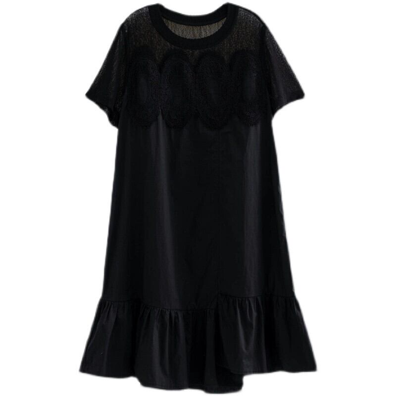 プラスサイズの女性の人形ドレス 2021 夏ルース脂肪ミリメートル年齢軽減レーススプライシングレース a ラインミドル丈スカート 大きめサイズ サマー 夏物 Aライン sine5558373759