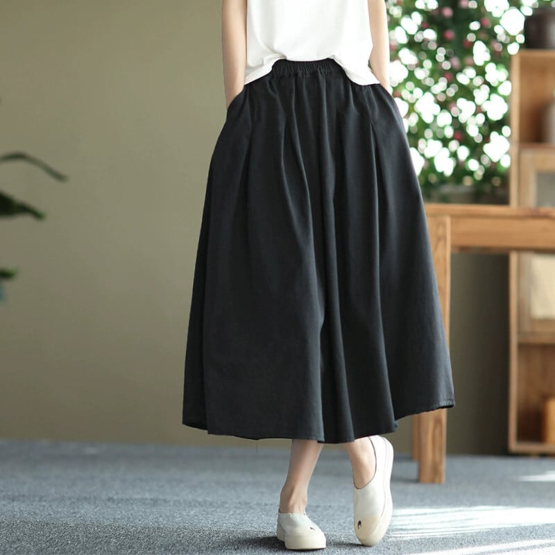 ディスカウントストア eign trade 撤退最終在庫カットラベルレディースコットンとリネンスカートレトロ大きな裾リネン A ラインスカート Aライン sine51518087023