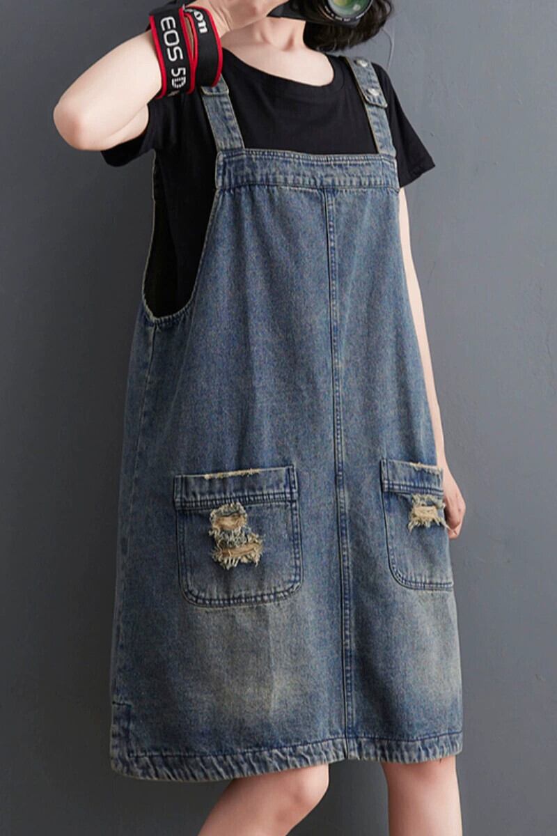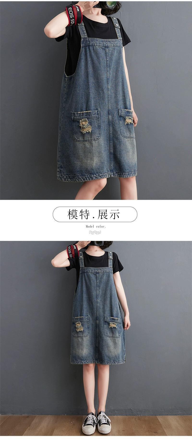 老化防止デニムサスペンダースカート夏 2021 ルーズファット mm ホールポケットミッドレングスプラスサイズの女性のサスペンダードレス 大きめサイズ サマー 夏物 sine39878510744