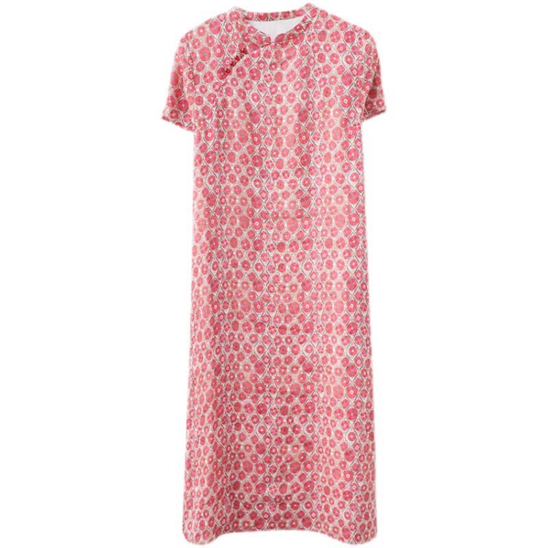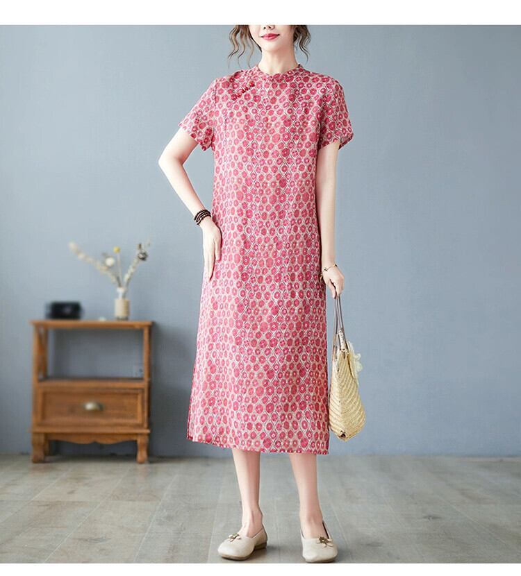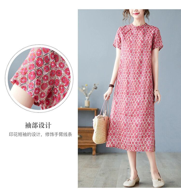 コットンとリネンのドレス 2022 夏緩い大きいサイズ中国風の斜めラペルレトロプリント改良されたチャイナドレスラミーミッドレングススカート 大きめサイズ サマー 夏物 sine13655928147