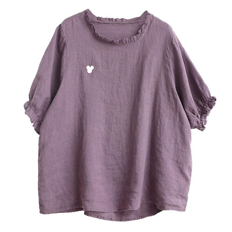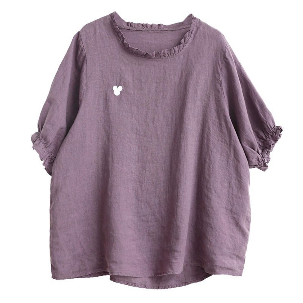 クリアランス漏洩孤児製品~ディスカウントストアブランドカットラベルレディースルーズリネンパープルトップ刺繍コットンリネン半袖Tシャツ レッド sine11928103113