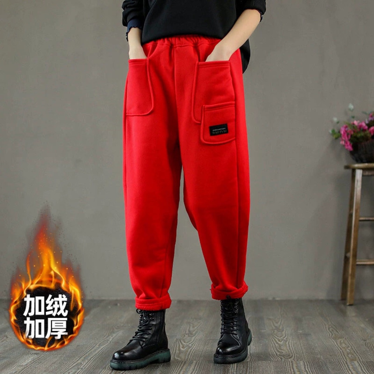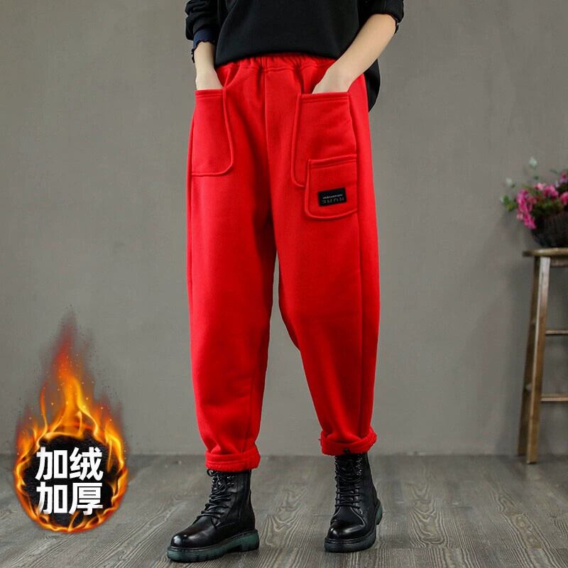 Eign Trade Export Clearance Leaked Women's Lサイズ200ポンドのカジュアルスウェットパンツとベルベットと厚みのあるアウターウェアハーレムパンツ 大きめサイズ sine74611323396