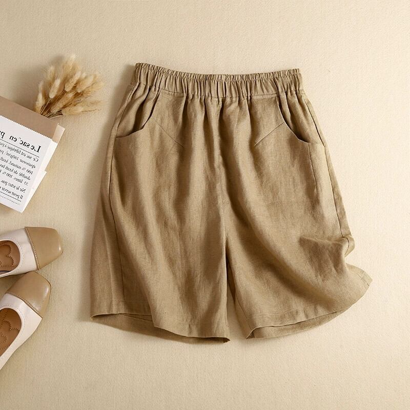 特別オファー~これらの綿とリネンのワイドレッグパンツの女性、夏ルーズ、大きいサイズ、痩身、レトロカジュアルリネンショートパンツ コットン 大きめサイズ サマー 夏物 ショーツ ブルマー sine77007863106