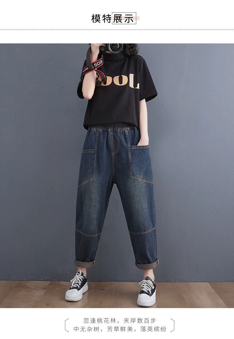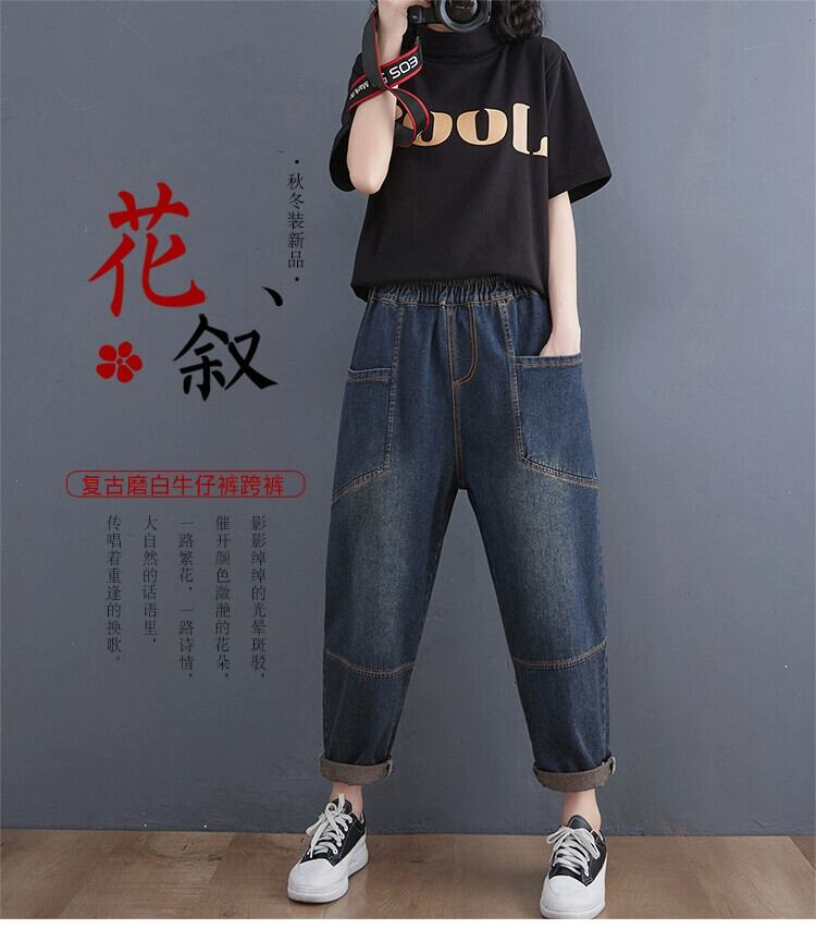 老化防止デニムハーレムパンツ女性 2022 春夏ゆるい大きいサイズ太ミリレトロダメージ加工スリムカジュアル 9 点パンツ 大きめサイズ スプリング 春物 サマー 夏物 sine17672197601