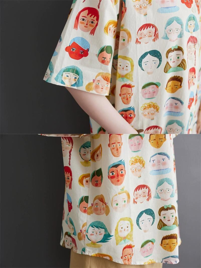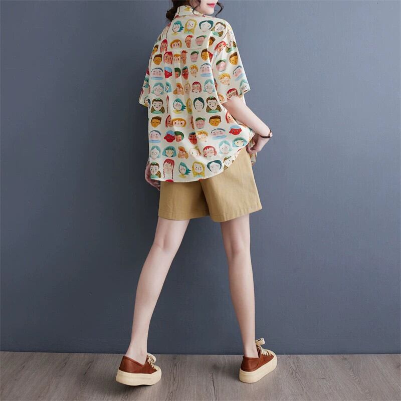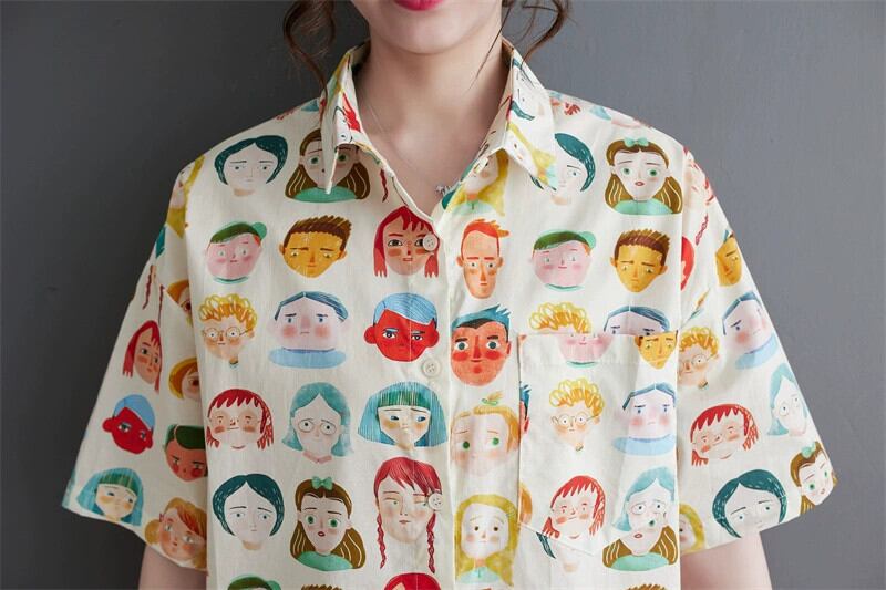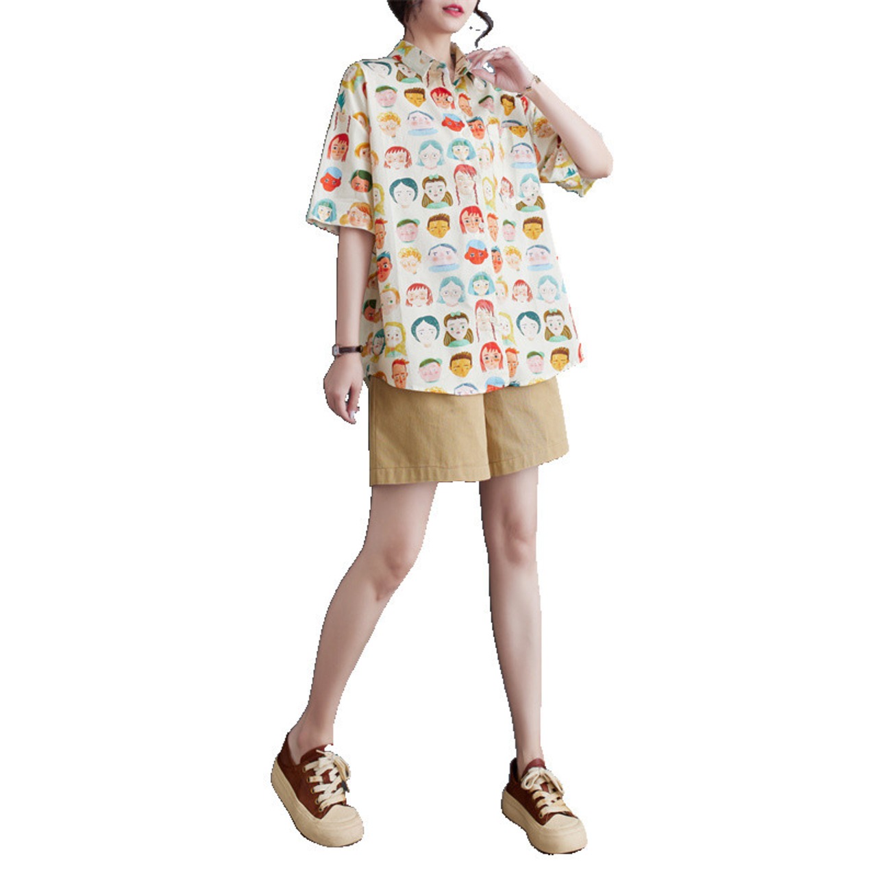 永貿易輸出大手ブランドテール商品、年齢削減のためキャビネットから撤去、漫画プリント半袖シャツ、女性用ゆったり薄手ポロカラーシャツ sine88374624368