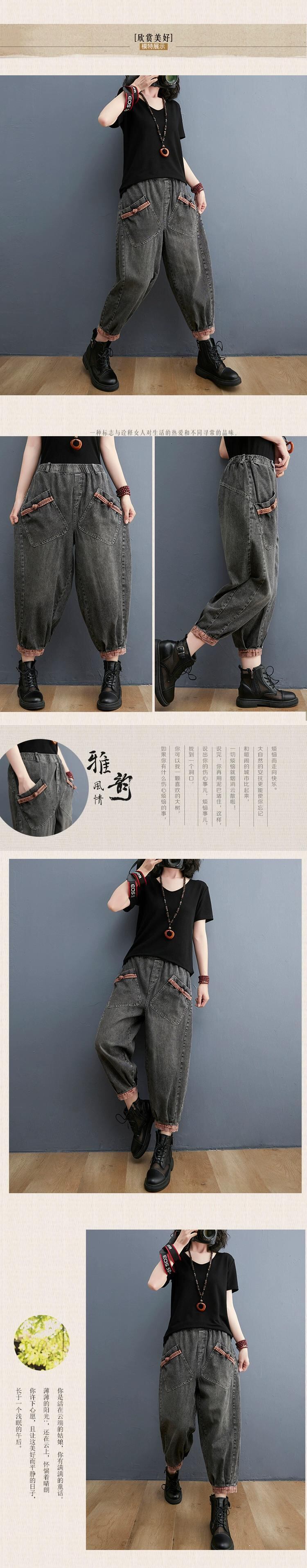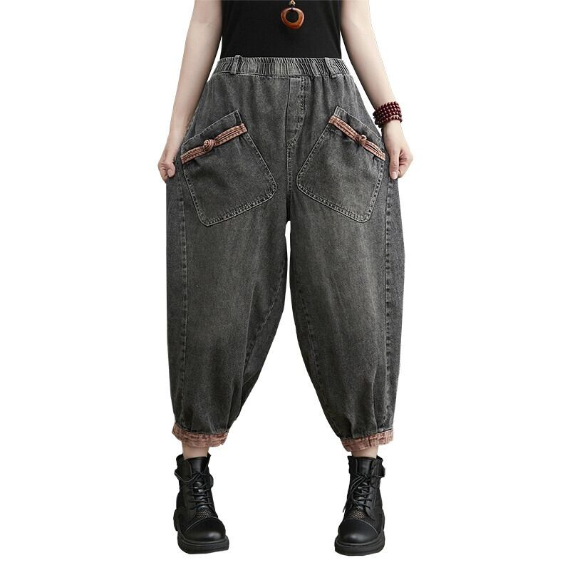 レトロバックルデニムハーレムパンツ女性 2021 秋と夏の新ルーズ大きいサイズ脂肪ミリメートル弾性ウエストカジュアルお父さんパンツ エラスティック 伸縮 大きめサイズ サマー 夏物 オータム 秋物 sine3631672165