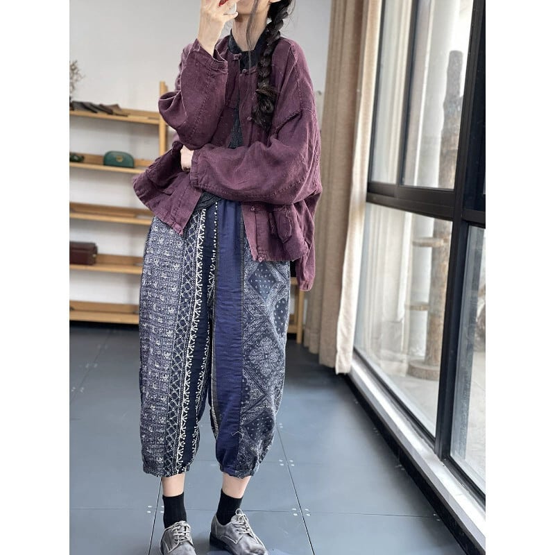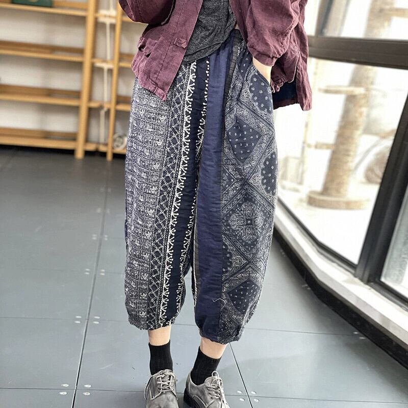 ディスカウント ストアの有名カウンターで注文とクリアランスを撤回する女性用レトロ プリント コットンとリネンのハーレム パンツ、ルーズ スリミング リネン 9 点パンツ sine70622722893