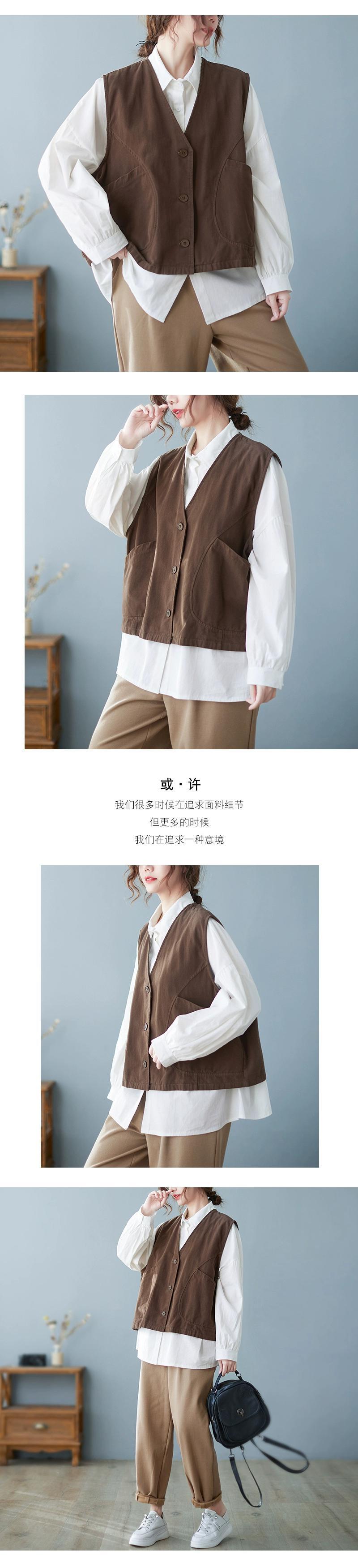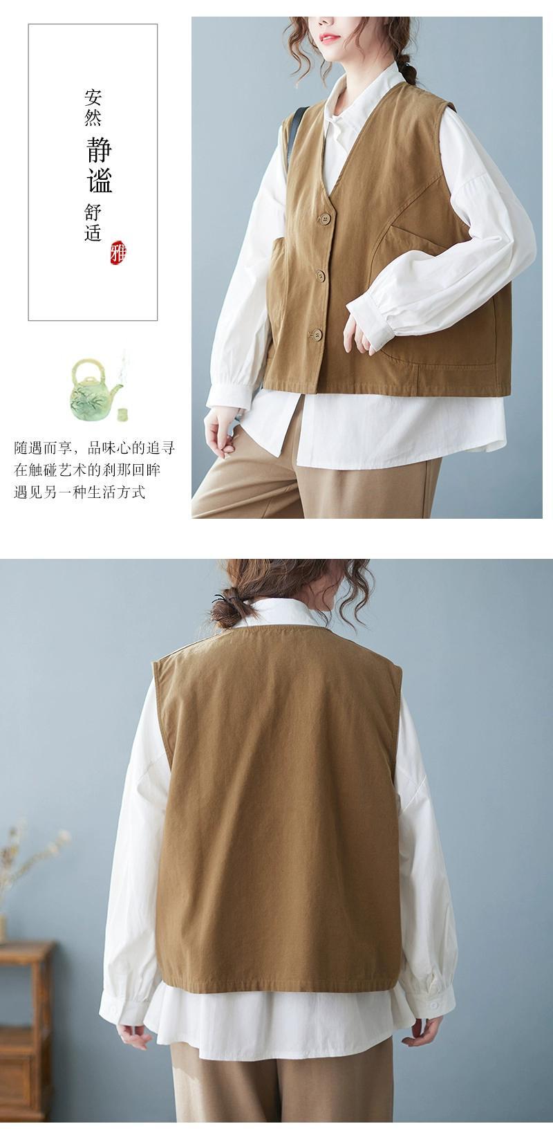 2022 春と夏のレトロベスト女性のルーズ大きいサイズ脂肪ミリメートル作業着大きなポケット V ネックノースリーブベストベストトップ 大きめサイズ スプリング 春物 サマー 夏物 Vネック sine21131483184