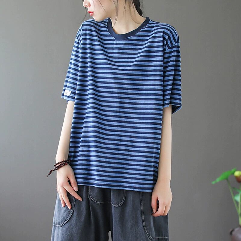 クリアランス漏れ ~ カウンターは eign trade カットラベルの女性用ルーズ半袖 T シャツ、年齢を軽減するストライプのカジュアル ボトム シャツ トップを撤回しました Tシャツ sine22677914298