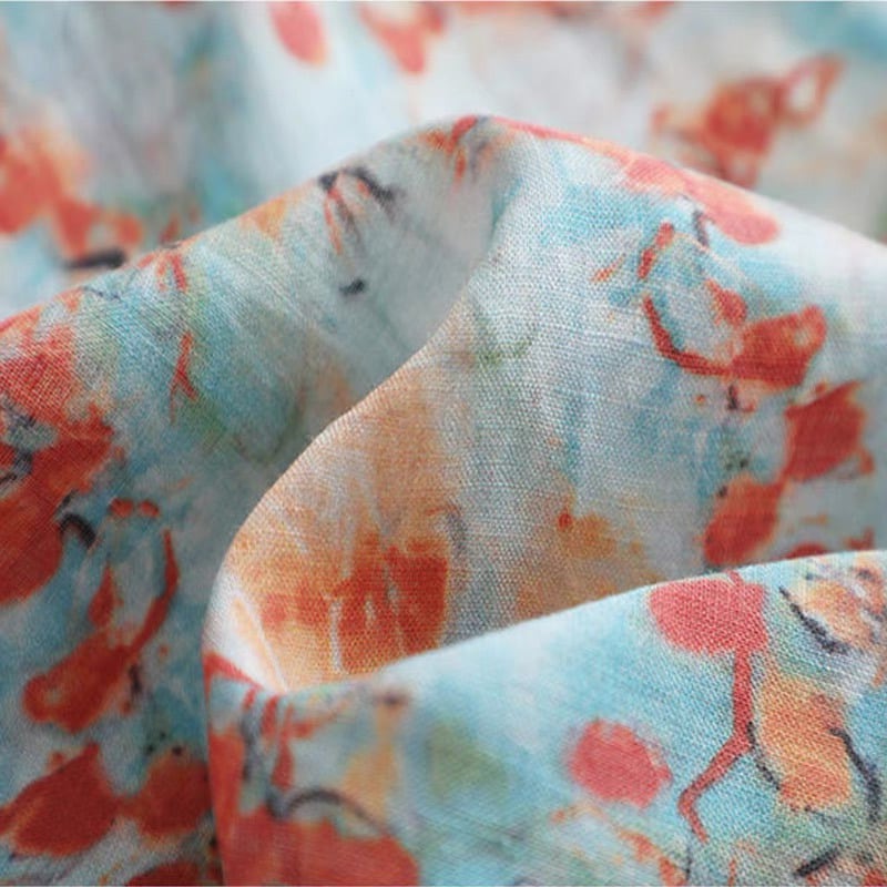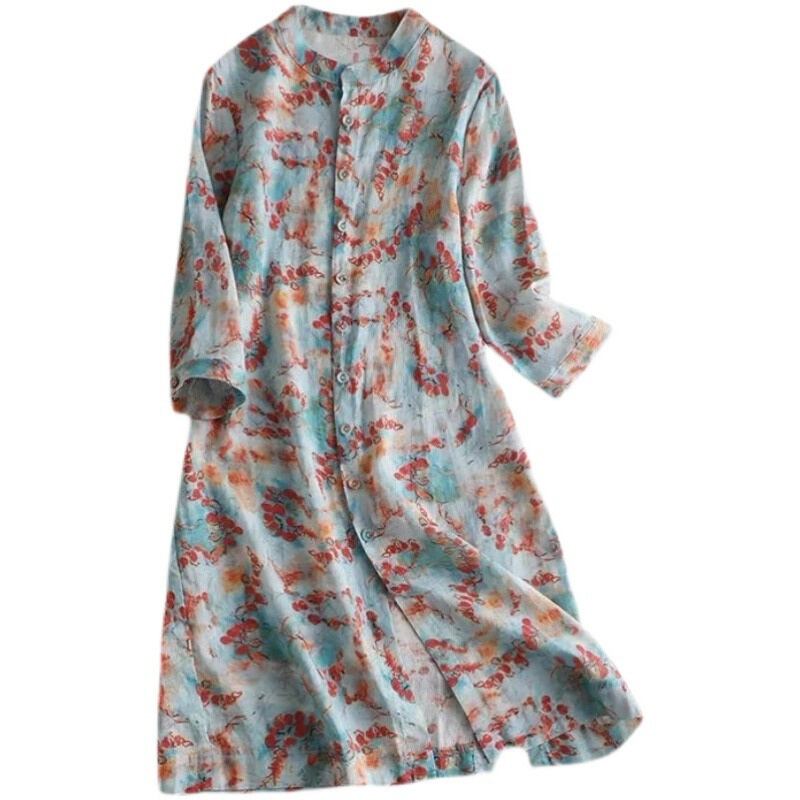 ディスカウントストアショッピングモール撤退カットラベル婦人服クリアランスミッドレングスプリントドレスリネンコットンリネンシャツスカート sine45777449898