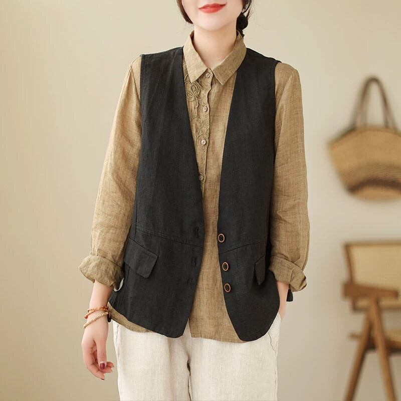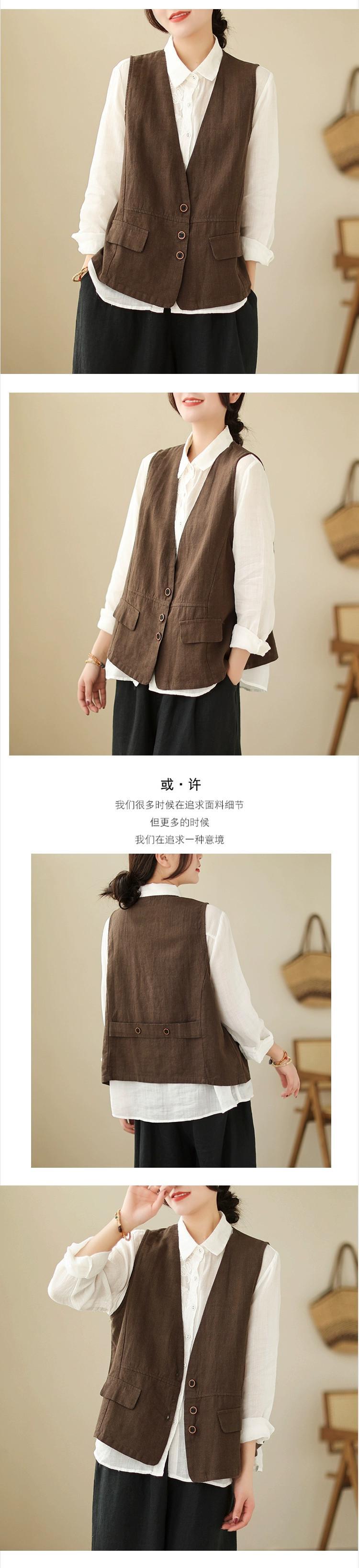 ese オリジナルシングル eign 貿易ビッグネーム女性の無地多用途 V ネックベストジャケットルーズコットンリネンノースリーブベストトップ薄い Vネック ソリッドカラー sine63248901662