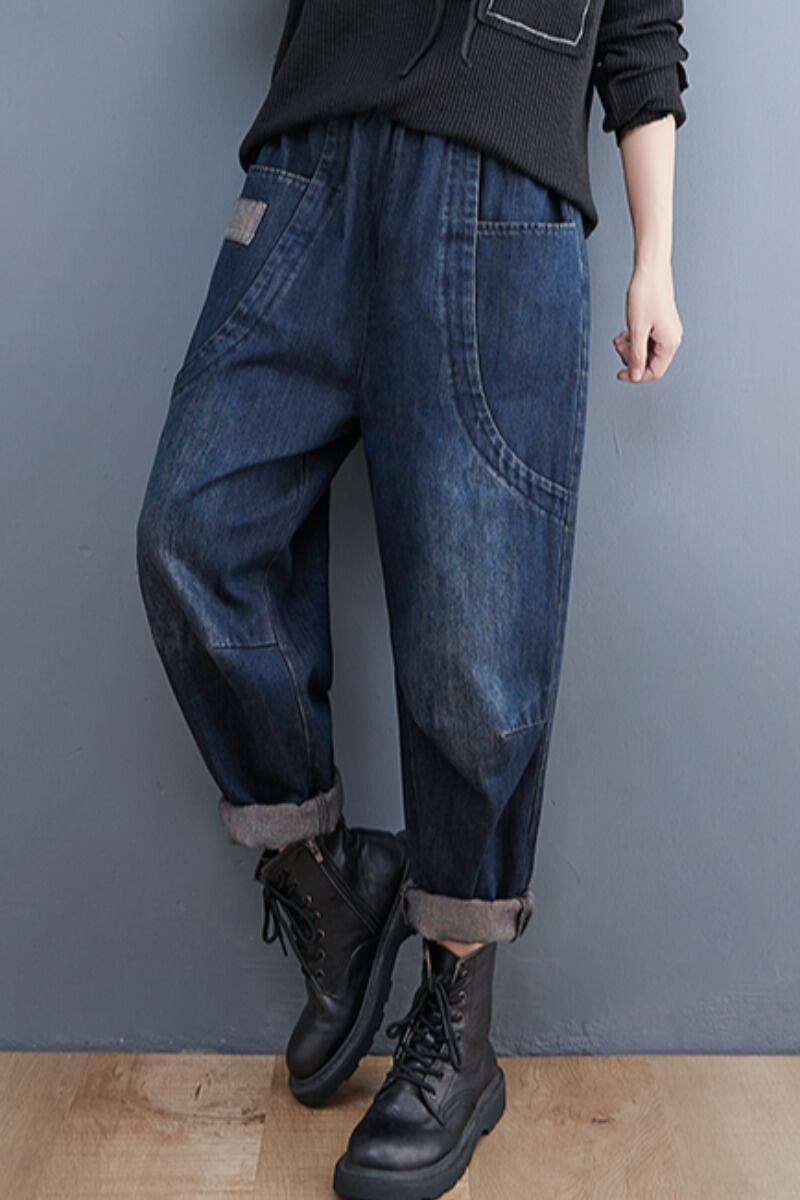 有能ダブルポケットジーンズ女性の秋冬 2021 冬ルーズ大きいサイズベルベット肥厚ウエストハーレムパンツ 大きめサイズ オータム 秋物 ウィンター 冬物 sine11616830563